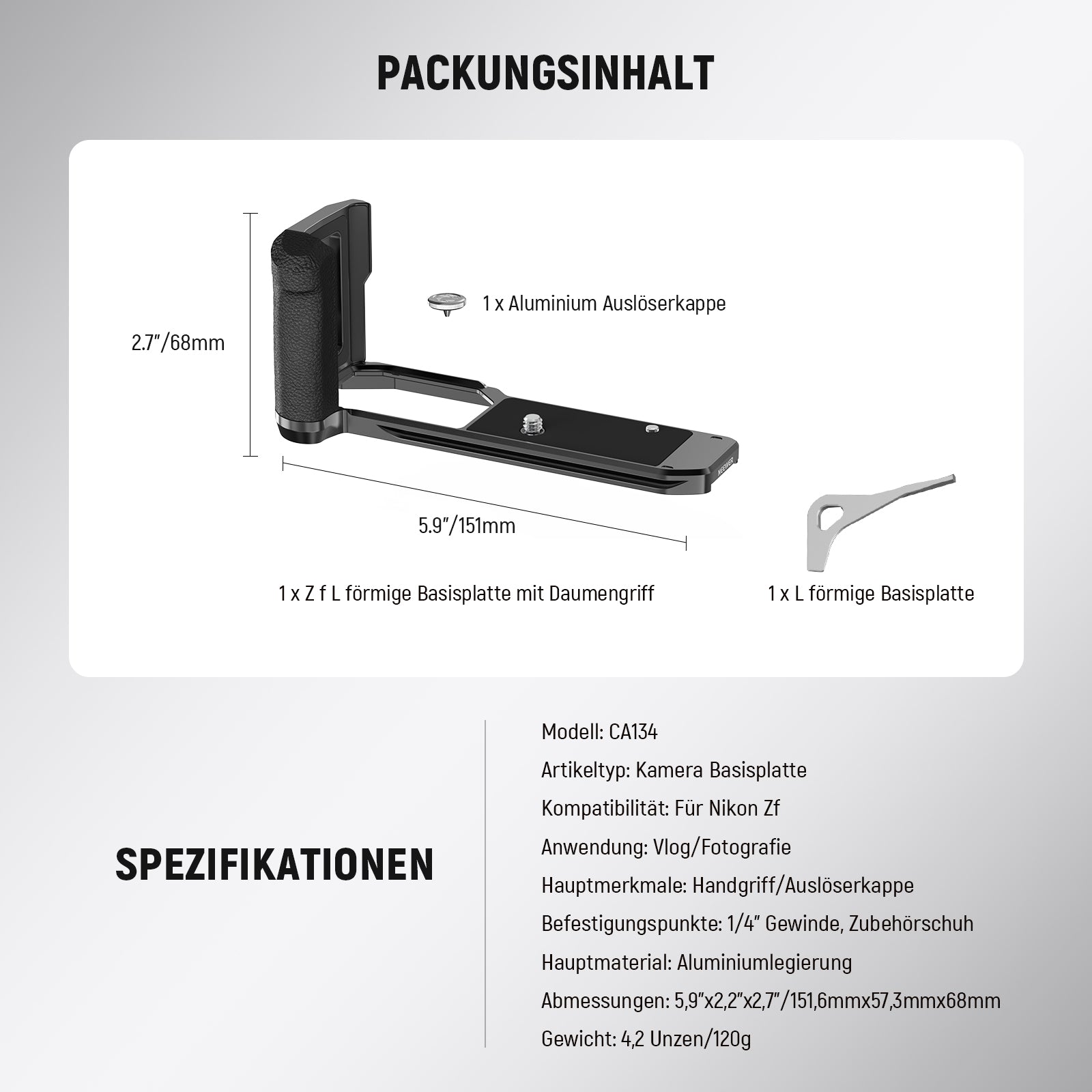 NEEWER CA134 L förmiger Handgriff Retro Montage Basisplatte für Nikon Zf