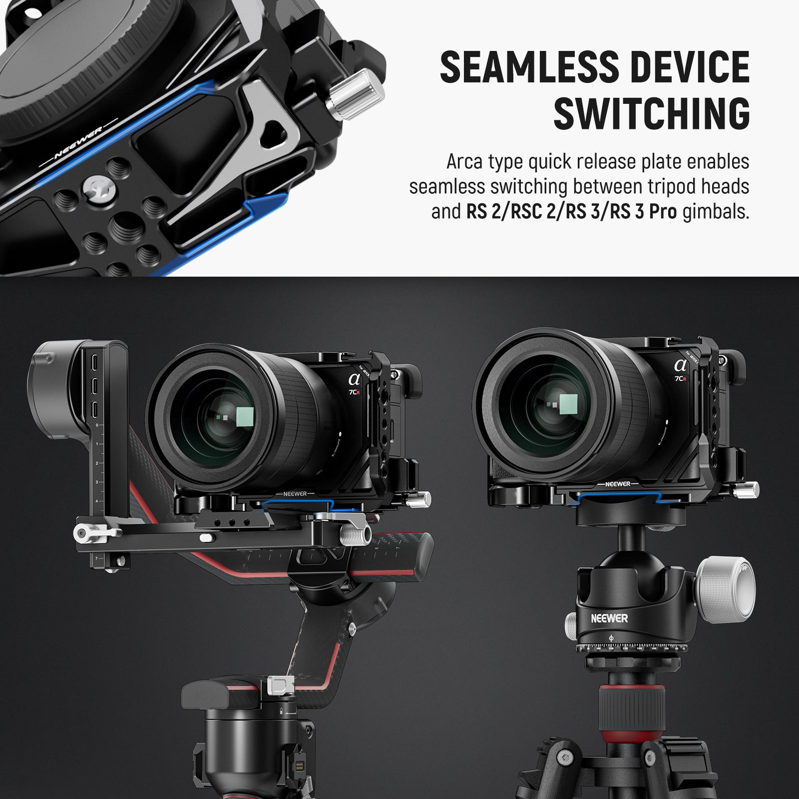 • 【Nahtloser Wechsel Arca Typ QR Basis】 Die Arca Schnellwechsel Basisplatte ermöglicht eine schnelle und einfache Montage auf Stativen, Einbeinstativen, Handgriffen und Slidern mit einem identischen Montagesystem, auch kompatibel mit DJI RS 2 RSC 2 RS 3 und RS 3 Pro Stabilisatoren, gepaart mit einem speziell entwickelten Anti Rutsch Schlitz, der einen reibungslosen und stabilen Wechsel zwischen Stativ und Handaufnahmen ermöglicht
