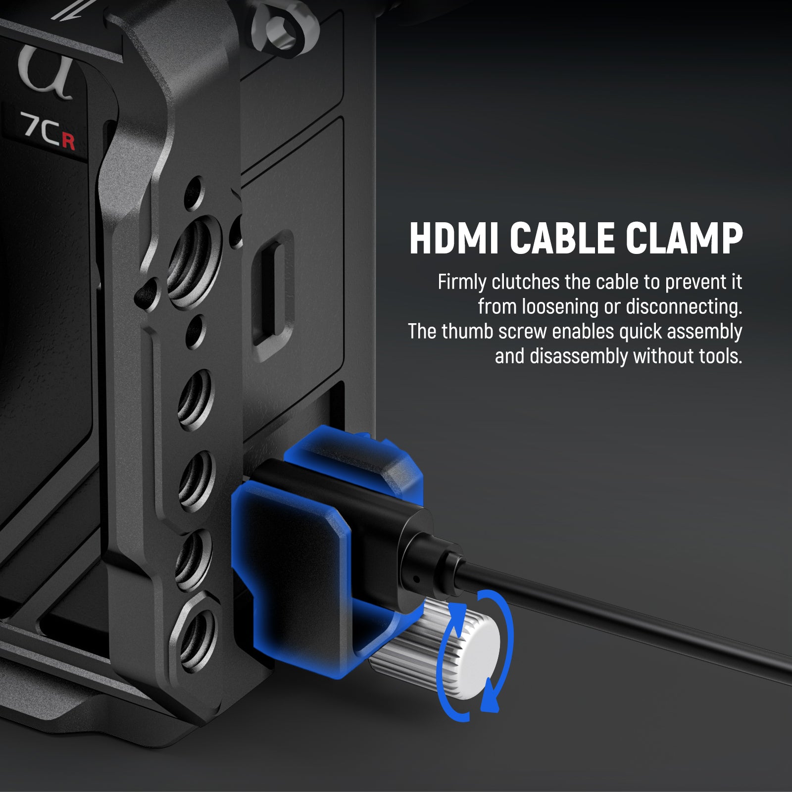 • 【HDMI Kabelklemme für stabile Übertragung】 Eine abnehmbare Kabelklemme kann verhindern, dass sich das HDMI Kabel oder USB Typ C Kabel versehentlich löst, und sorgt für eine stabile Signalübertragung. Mit zwei Rändelschrauben kann die Klemme ohne Werkzeug von Hand festgezogen werden