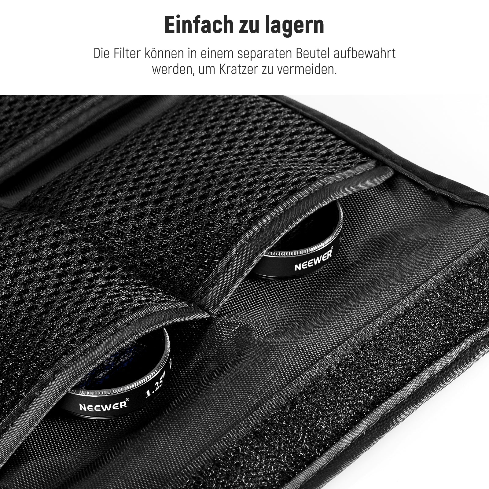 - 【Super dünn und leicht】Mit einer Dicke von nur 0,16"/4mm und einem Gewicht von nur 5,12oz/147g. Dieser ultraflache und leichte Filter fügt Ihrer Filmeinrichtung kaum merkliches Gewicht hinzu, wenn er montiert ist. Bewahren Sie ihn zur sicheren Aufbewahrung oder während des Gebrauchs in der Tragetasche auf