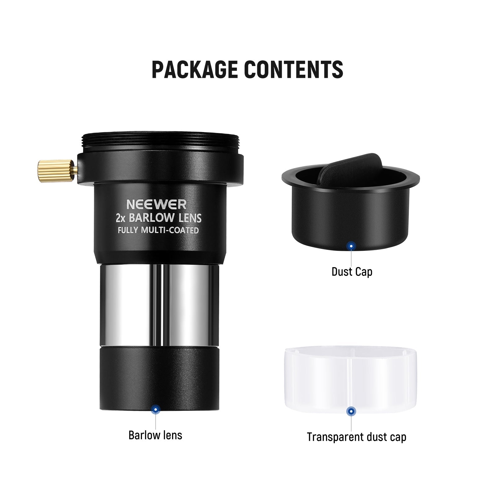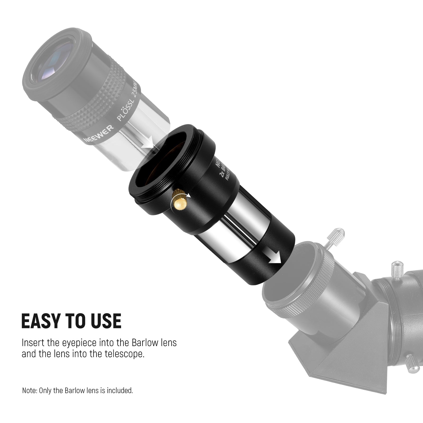 NEEWER 1.25” 2X Barlow-Linse zur doppelten Vergrößerung von Teleskop-Okularen