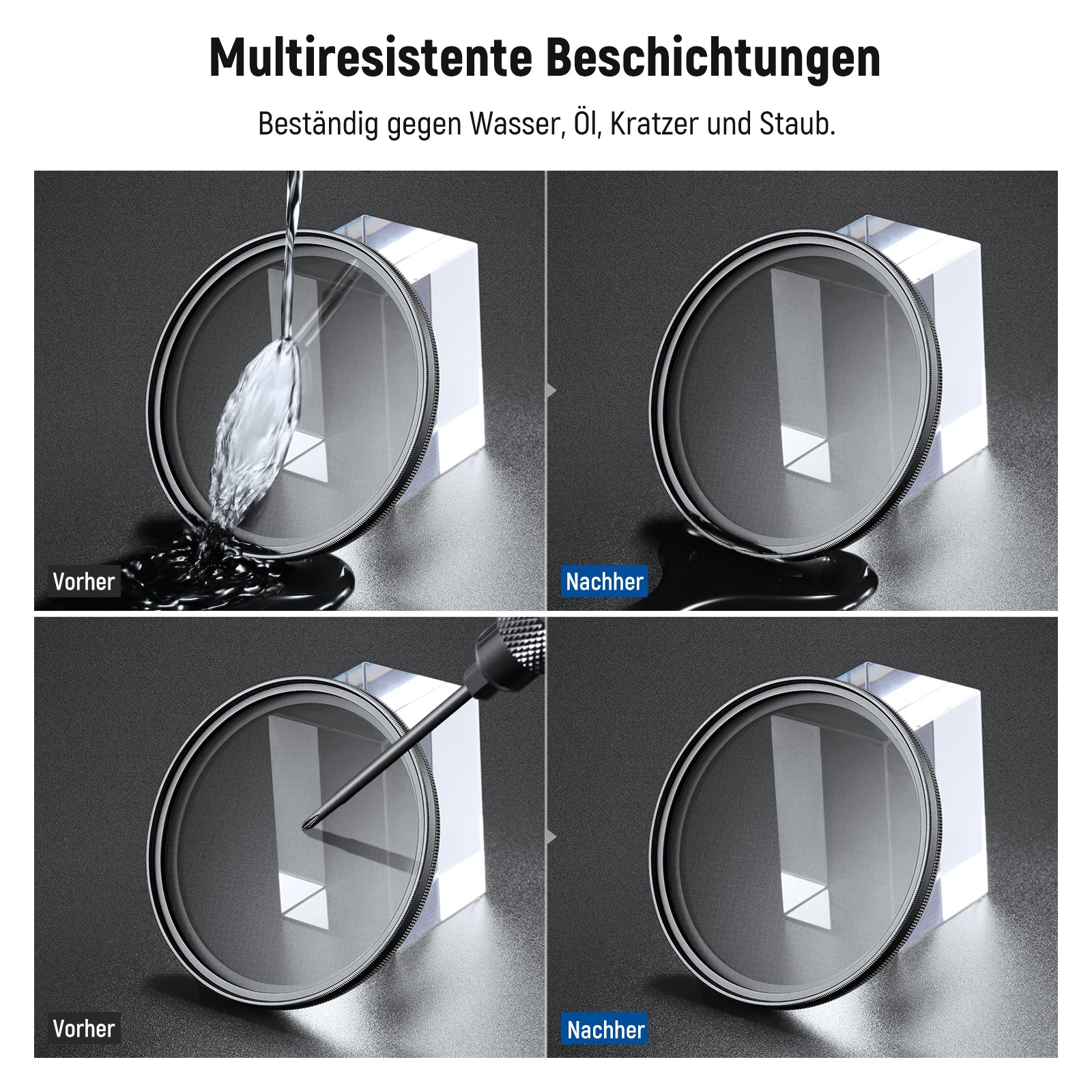 - Mehrfach resistente Beschichtungen- Mehrfach widerstandsfähige Beschichtungen schützen den Filter bei alltäglichen Aufnahmen vor Wasser, Fingerabdrücken, Schmutz, Staub und Kratzern. Drei mitgelieferte Reinigungstücher sorgen für einen stets sauberen Filter