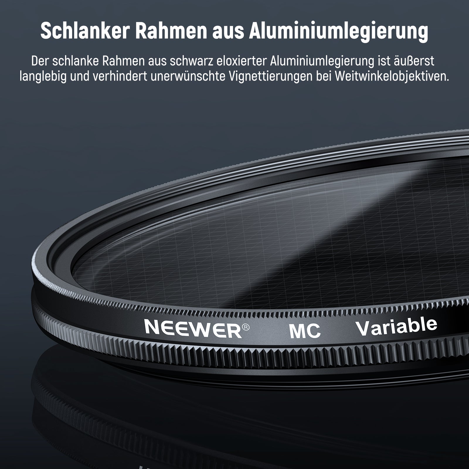 - Schlanker Rahmen aus Aluminiumlegierung- Der schlanke Rahmen verhindert Vignettierung bei Weitwinkel und Teleobjektiven. Hergestellt aus einer leichten und dennoch robusten Aluminiumlegierung, hält er auch unbeständigen Außenbedingungen stand, ohne unnötiges Gewicht hinzuzufügen