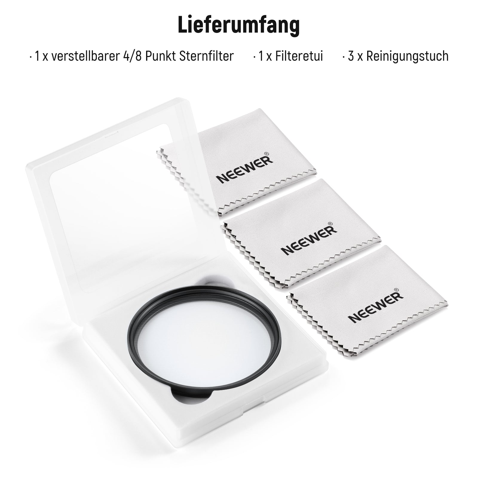 - 1 x Einstellbarer 4-/8-Punkt-Sternfilter