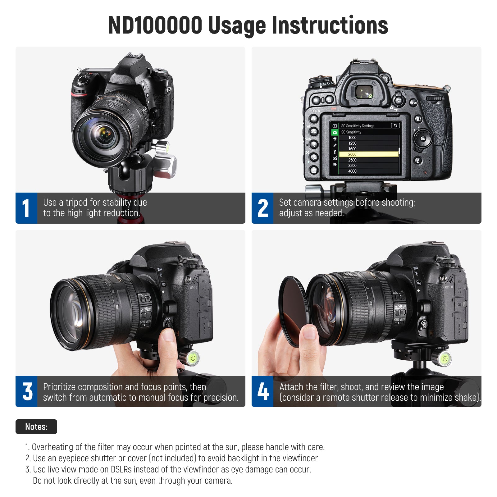 - Exklusiver Ultra Dark ND100000-Filter: Erfassen Sie außergewöhnliche Bilder, wenn Himmelskörper ausgerichtet sind, wie z. B. während Mondtransits, mit unserem exklusiven ND100000-Filter. Es wurde entwickelt, um eine 16,5-Grad-Stop-Lichtreduzierung zu bieten, die gestochen scharfe, scharfe und lebendige Bilder ohne Überbelichtung oder Farbstich liefert – ideal für himmlische Ereignis-Fotografie (nicht direkt durch Ihre Kamera in die Sonne schauen)