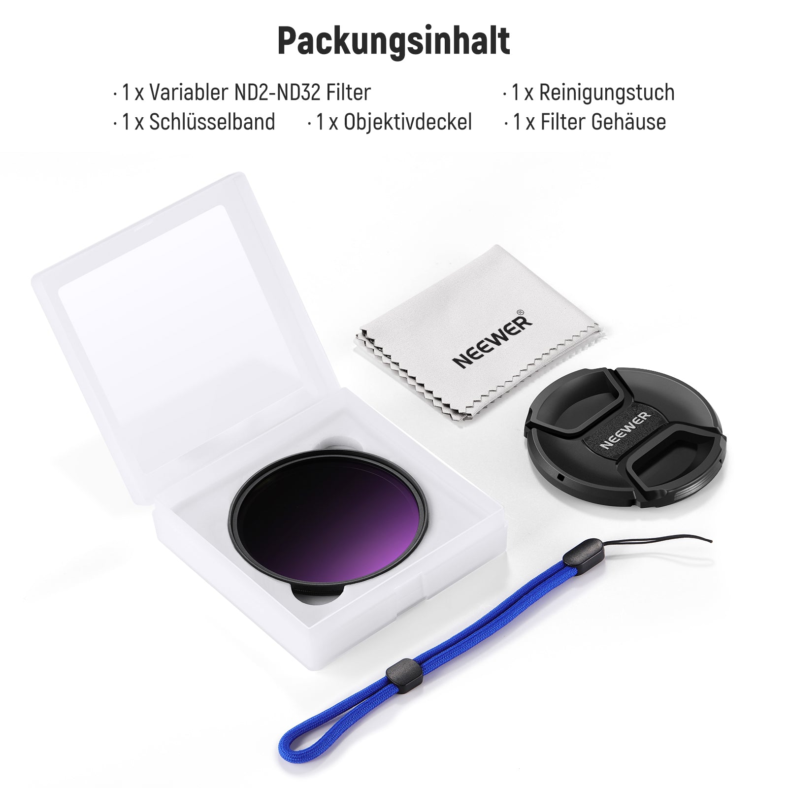 NEEWER ND2-32 (1-5 Stops) Variabler ND Filter mit Objektivdeckel