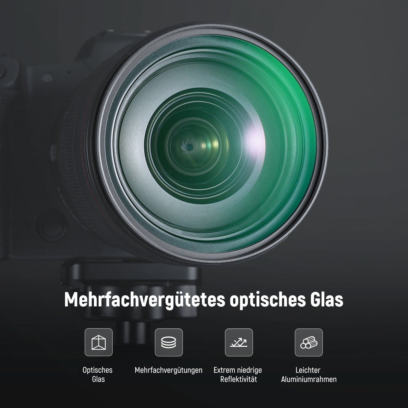 - Schlanker Rahmen aus Aluminiumlegierung- Beide Filter verfügen über einen schlanken Rahmen aus Aluminiumlegierung, um Vignettierung bei Weitwinkelobjektiven effektiv zu vermeiden. Perfekt für Content Creator und Influencer, ist es ein unverzichtbares Fotoausrüstung und eine essentielle Digitalkamera Zubehör