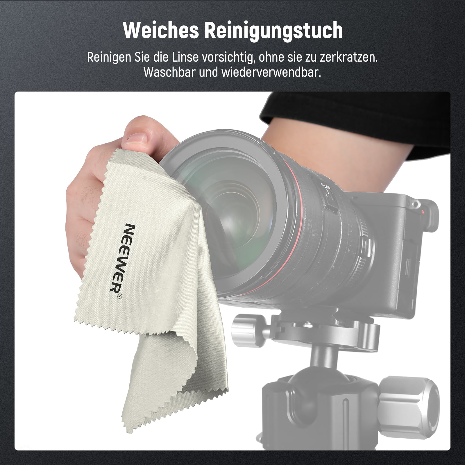 - Mehrfachvergütetes optisches Glas- Die mehrfach widerstandsfähige Beschichtung (MRC) ist beständig gegen Wasser, Staub, Fingerabdrücke, Flecken und Kratzer bei Außenaufnahmen. Für die tägliche Pflege sind drei Reinigungstücher im Lieferumfang enthalten