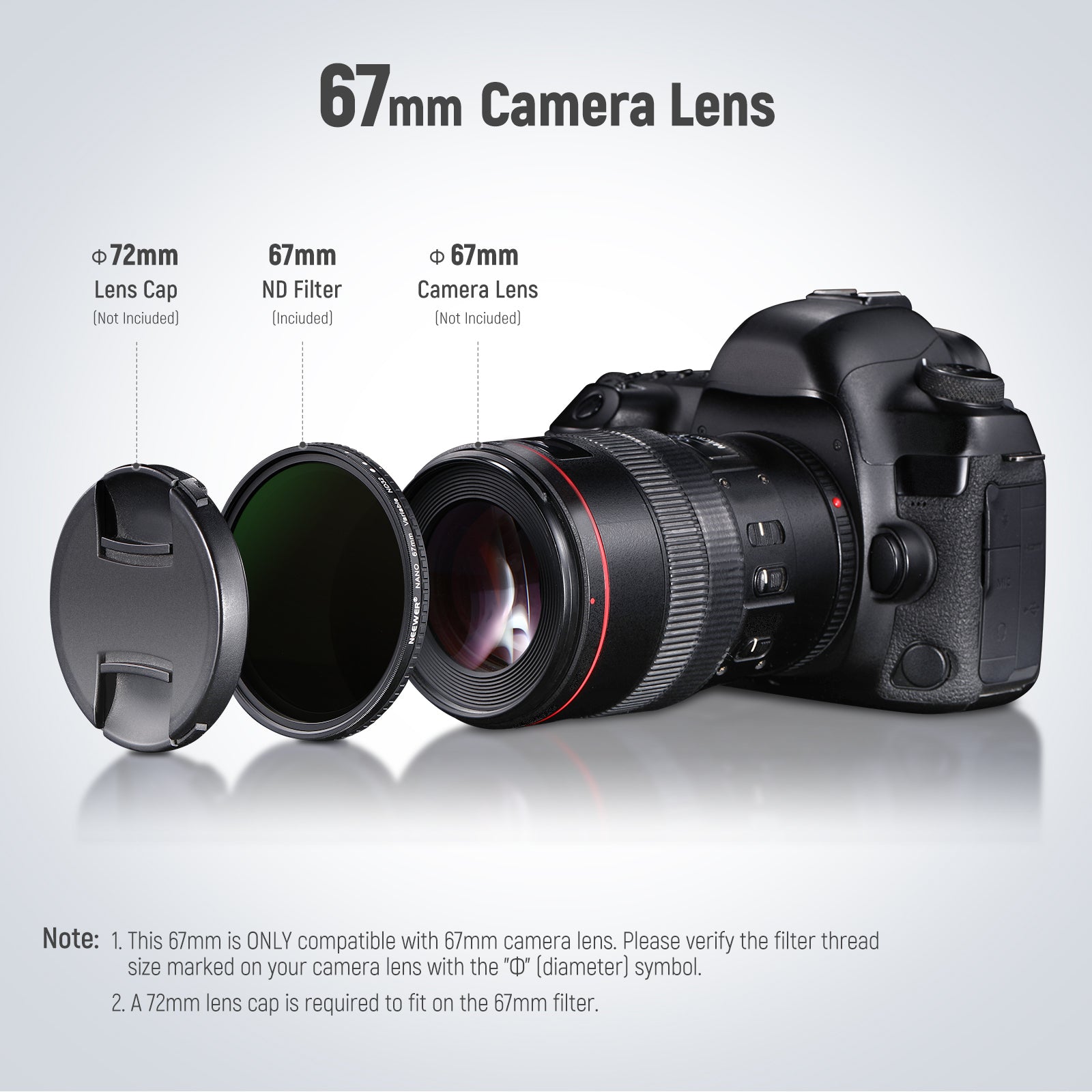 - 【Über seine Kompatibilität】 Dieser 77mm ND Filter passt nur auf ein 77mm Kameraobjektiv. Bitte bestätigen Sie vor der Bestellung die auf Ihrer Kamera mit dem Symbol „Ф“ (Durchmesser) markierte Filtergewindegröße. Auf der Kamera montiert, schützt der ND Filter auch Ihr Kameraobjektiv vor Kratzern. Inklusive Schutzhülle und Reinigungstuch