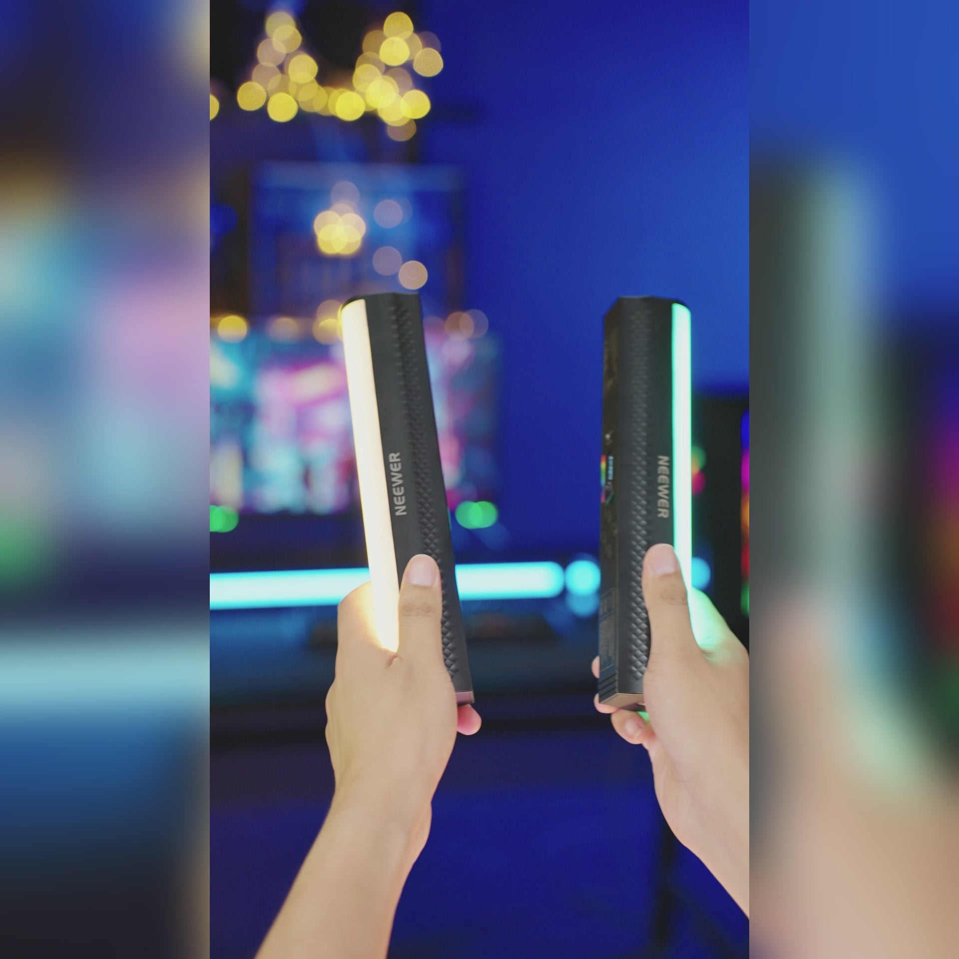- Vielseitiger, farbenfroher RGB Hand Leuchtstab- Mit 195 leistungsstarken LEDs liefert diese 10W Leuchte von NEEWER eine max. Beleuchtungsstärke von 730Lux bei 0,5m, einen CRI von 95+ für eine genauere Farbwiedergabe ohne Flimmern oder Blendung. Kompakt mit 228mm x 40mm x 45mm und 270g für Griff mit einer Hand, ideale Ausrüstung für Ihre Beleuchtungszubehör, für Fotografie, Filmen, Live Streaming, Partys, Hochzeiten, Camping, Stilllebenfotos, Fotoshootings im Studio, YouTube/TikTok Videos usw