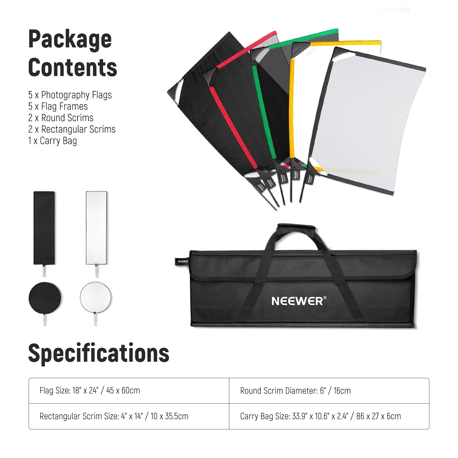 NEEWER 5-in-1 Faltbares Gitter Scrim Flaggen Set