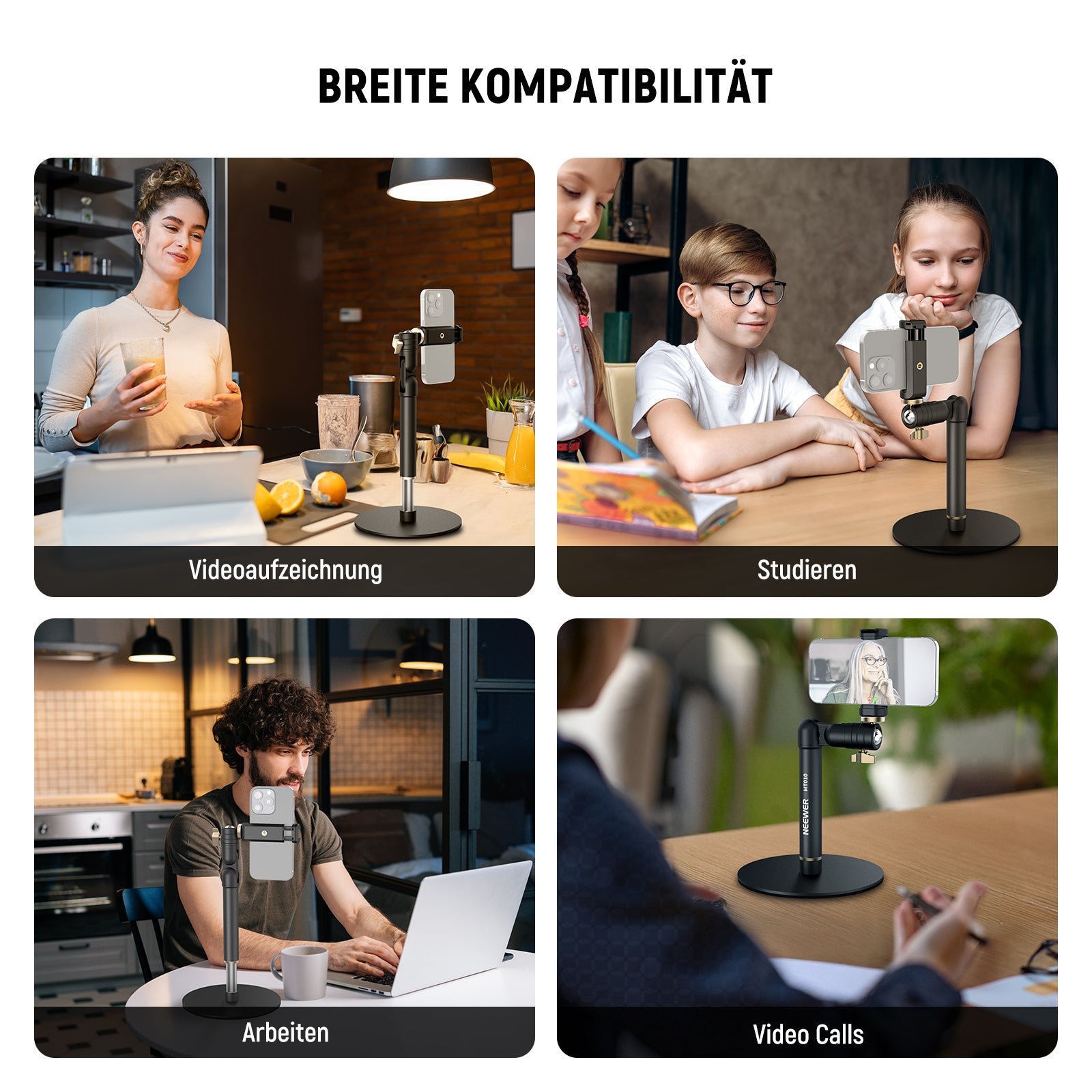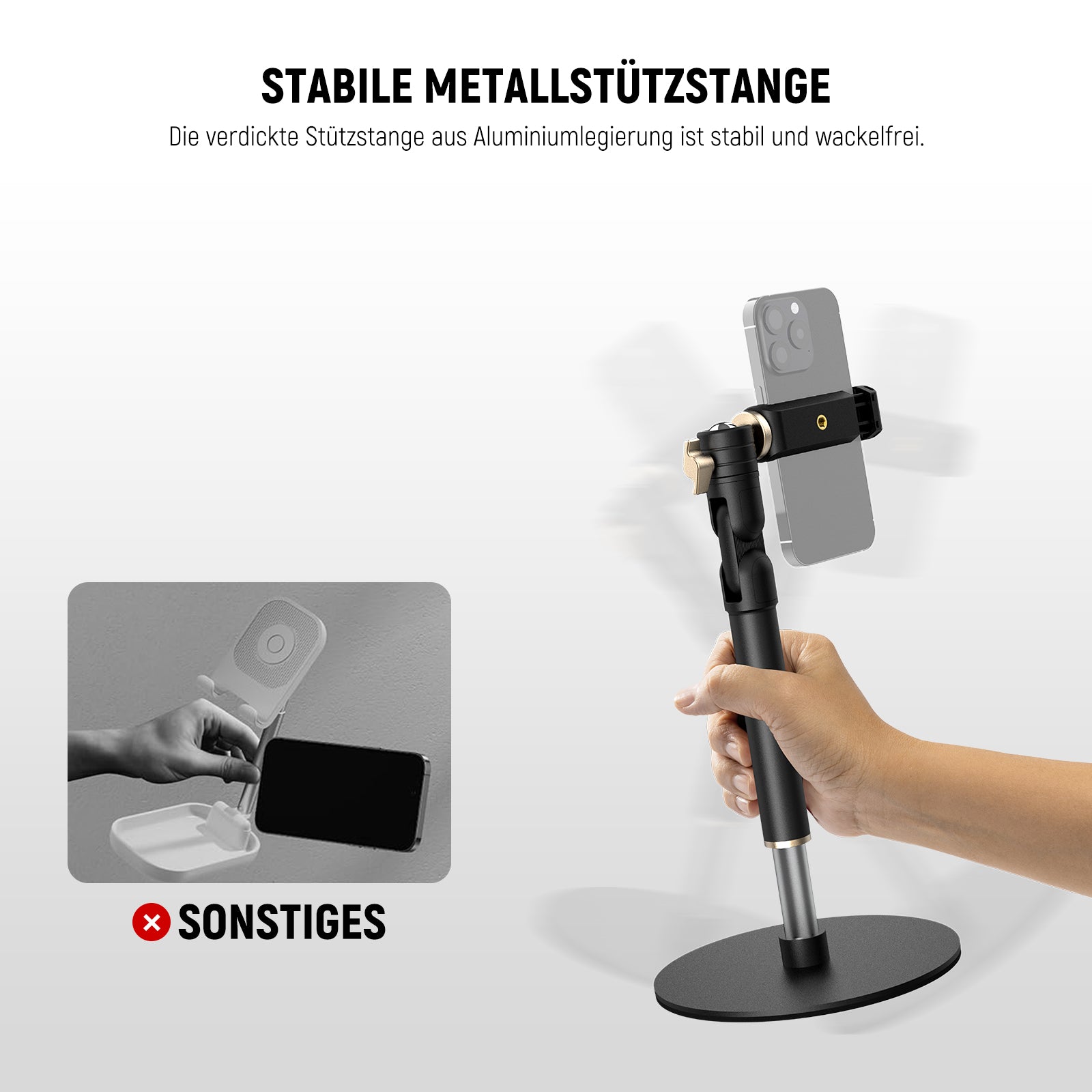 - Faltbarer Handyhalter für den Schreibtisch- Der ergonomische Handy Halterung für den Schreibtisch bietet eine einstellbare Höhe von bis zu 5,3cm und einen klappbaren Auslegerarm, der von 25,1 bis 30,4cm ausgezogen werden kann. Ob ausgefahren oder zusammengeklappt, er hält Ihr Smartphone sicher fest und bietet auch bei längerer Nutzung einen angenehmen Blickwinkel. Ideal zum Lesen von Texten, Ansehen von Videos, Selfies, Live-Streaming, als Nachttisch, für Videokonferenzen im Homeoffice