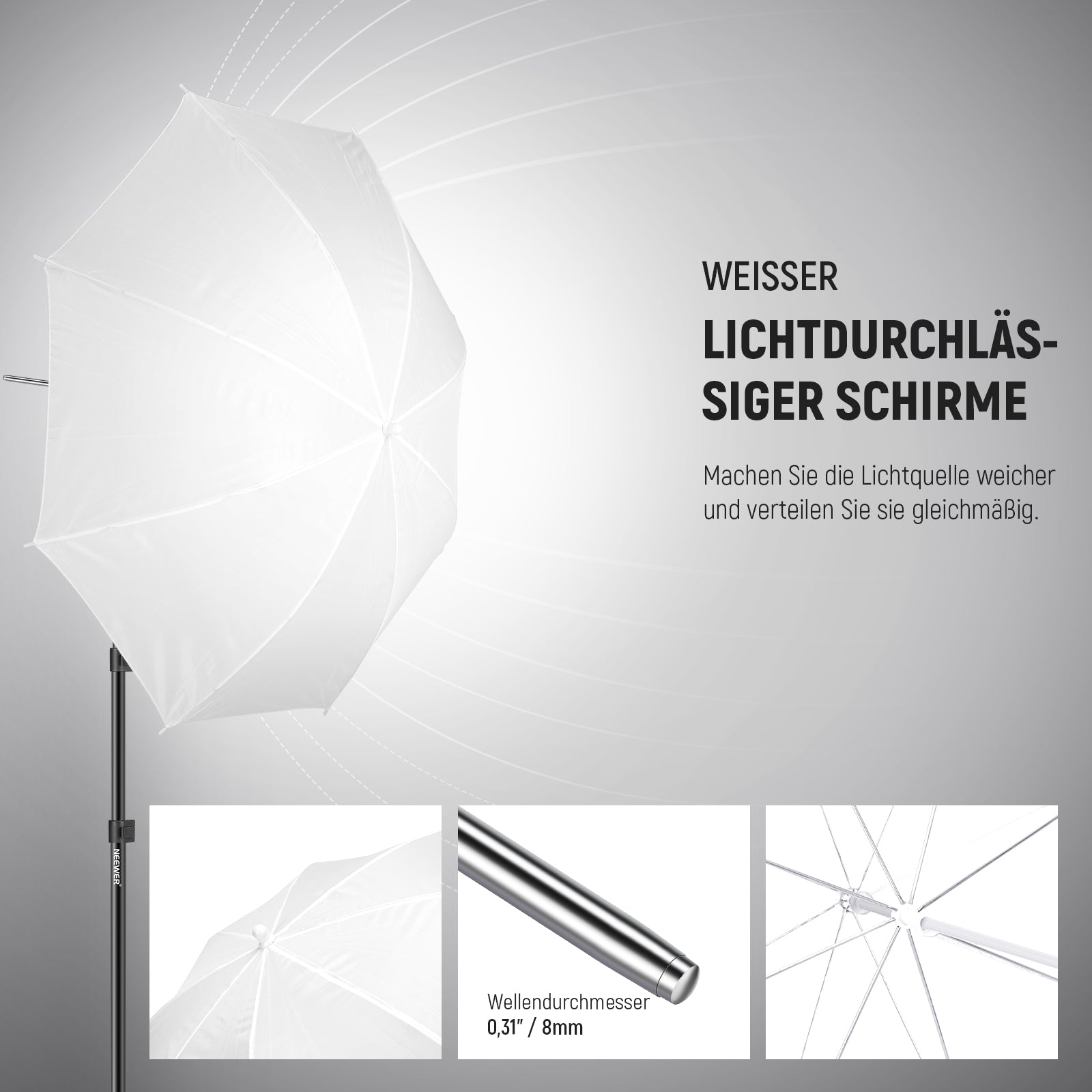- Abmessung: 32" (80 cm) Schirme