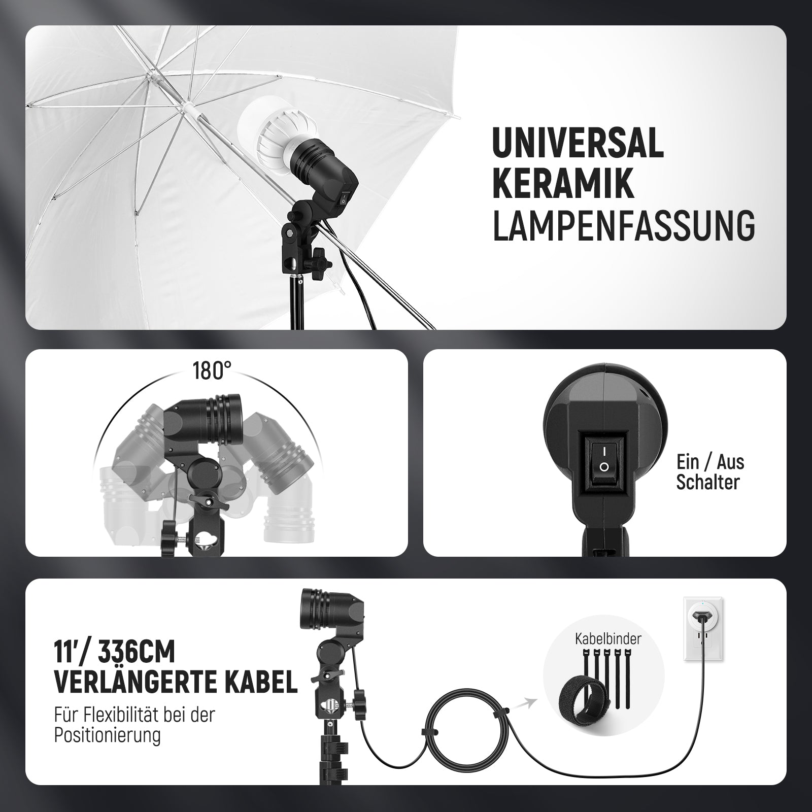 - Müheloses Kabelmanagement- 5 Kabelbinder ermöglichen es Ihnen, die Kabel an den Lampenstativen mit Klettverschlüssen für ein bequemes und aufgeräumtes Kabelmanagement zu befestigen