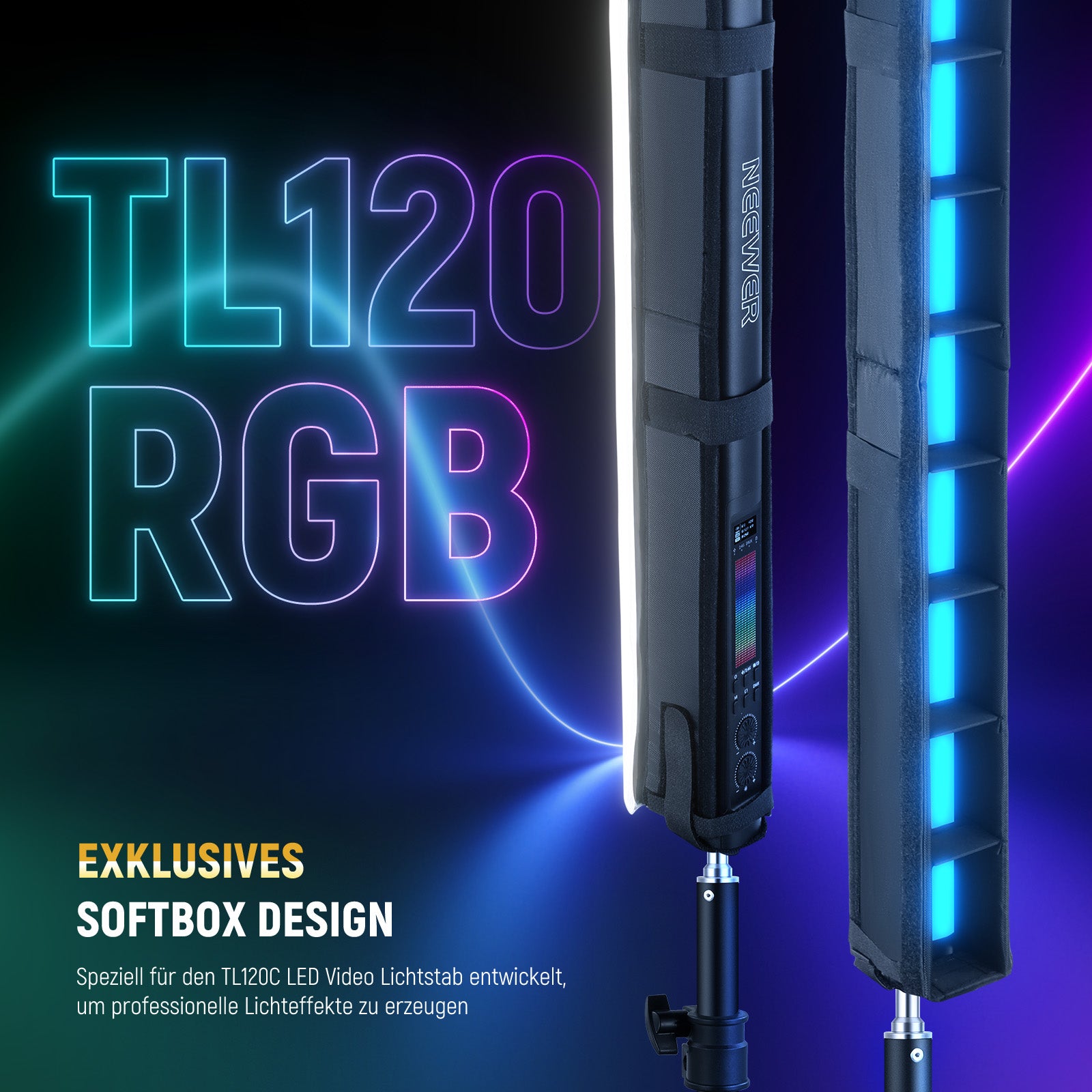 • Für TL120C RGB LED Röhrenlicht- Enthält die 49,6" x 2" x 3" / 1260 x 50 x 75mm Softbox, das integrierte Wabengitter und einen separaten weißen Diffusor, exklusiv kompatibel mit NEEWER TL120C RGB LED Videolichtstab
