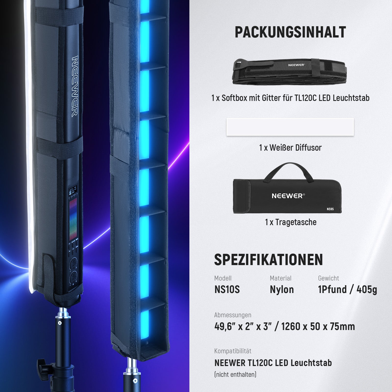 NEEWER NS10S LED Lichtdiffusor Set für TL120C RGB LED Leuchtstab