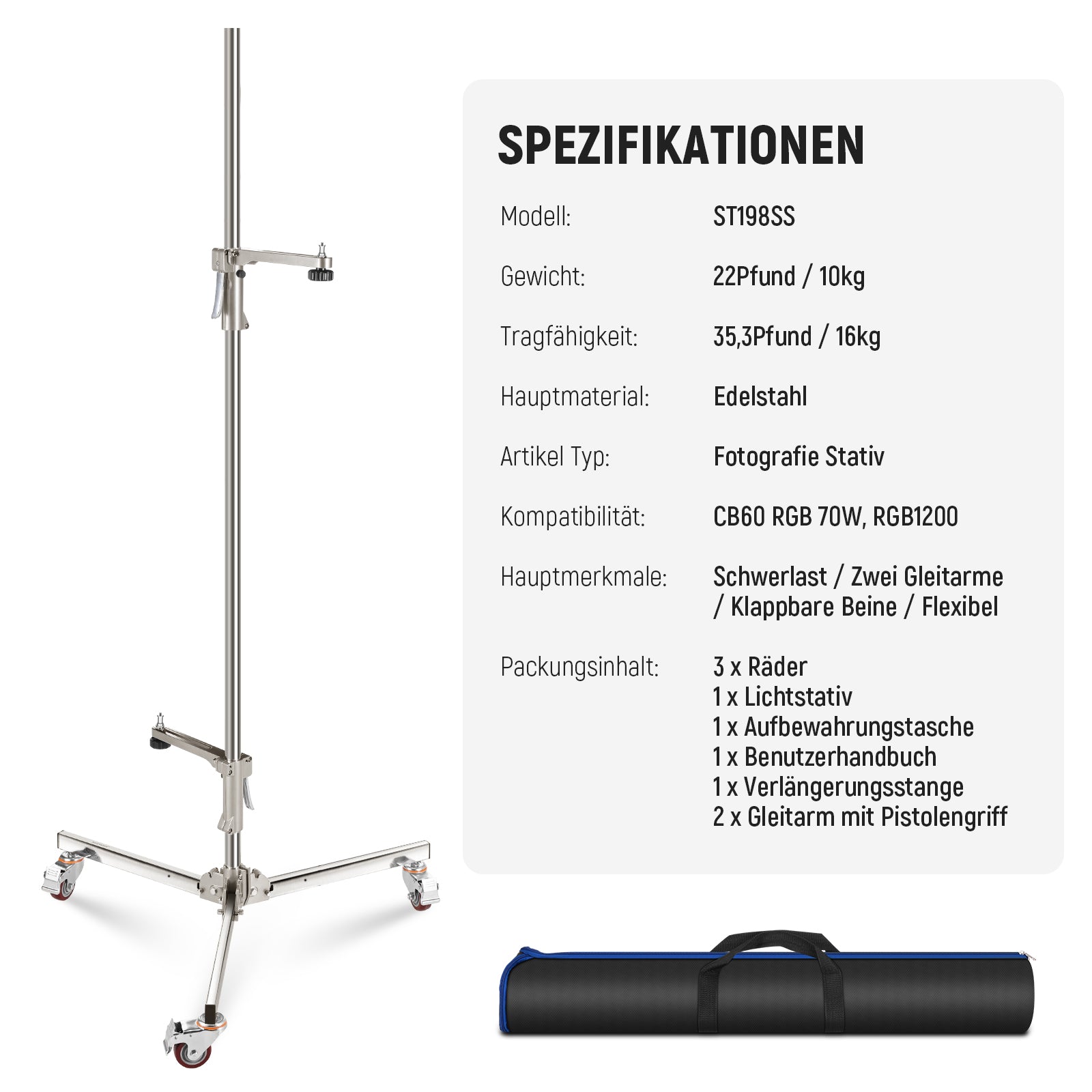 NEEWER ST198SS 6.5ft/198cm Edelstahl Lichtstativ