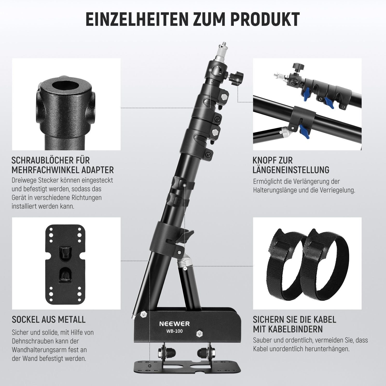 NEEWER WB-100 116cm Dreieckiger Wandhalterung Auslegerarm