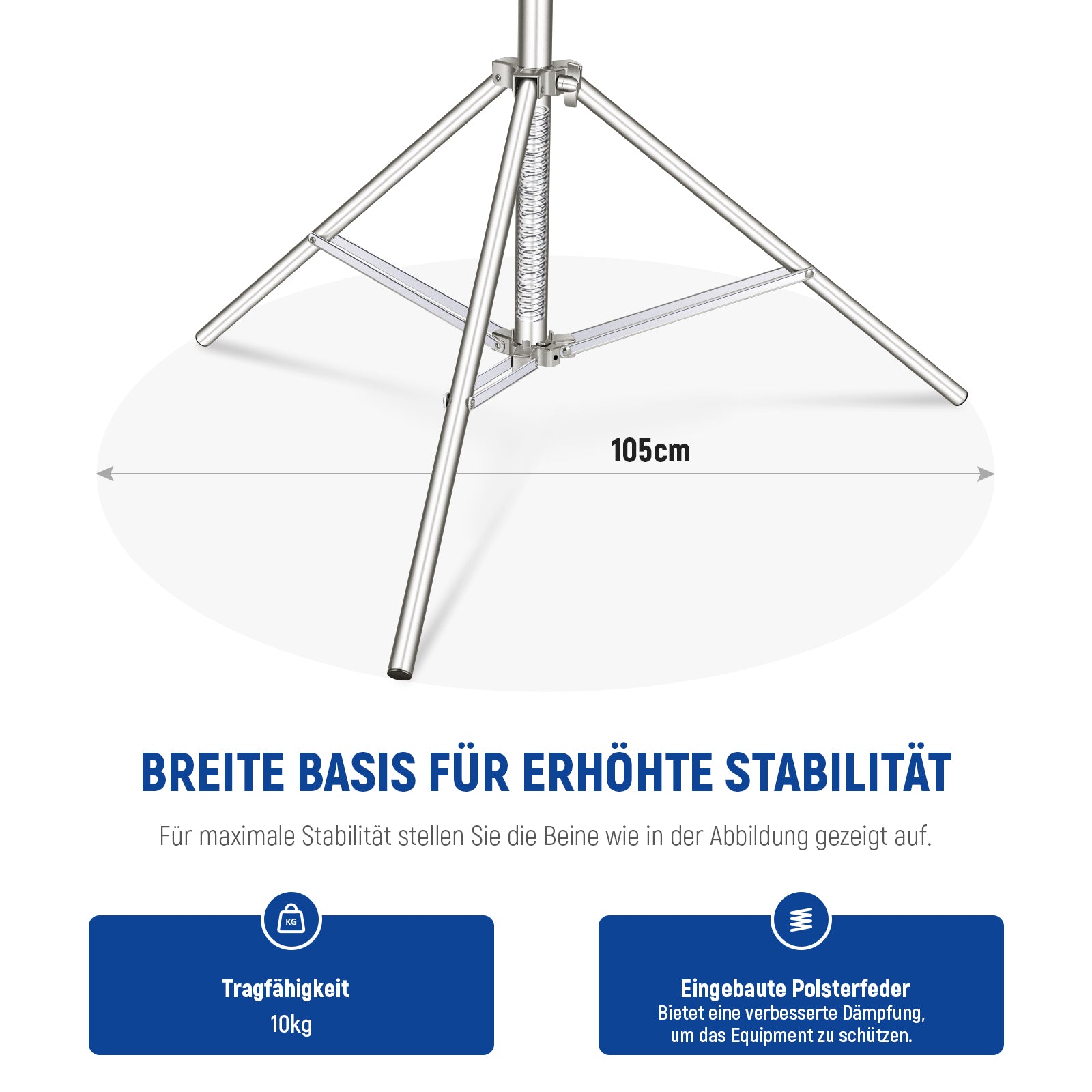 - Vielseitig einsetzbar: Der Lichtständer wird für die Montage von Stroboskoplichtern, Reflektoren, Regenschirmen, Softboxen und anderen Fotogeräten verwendet