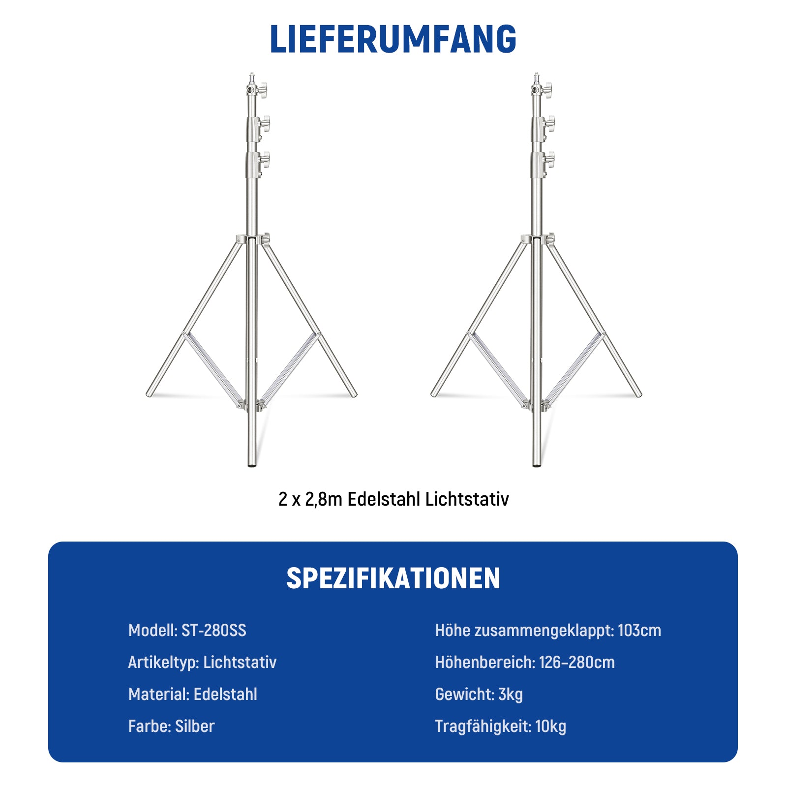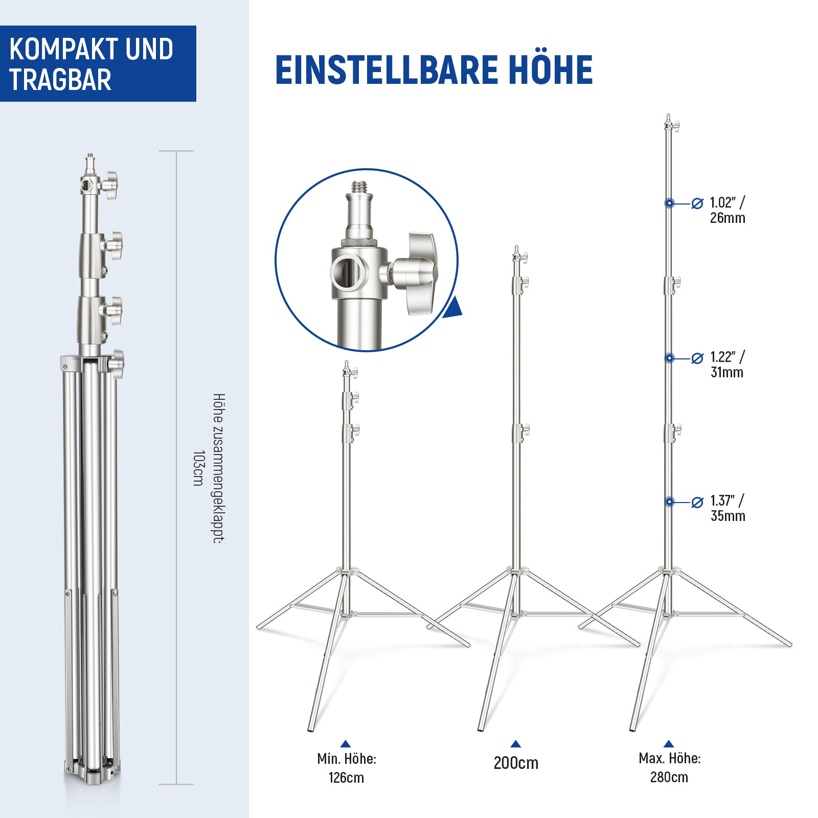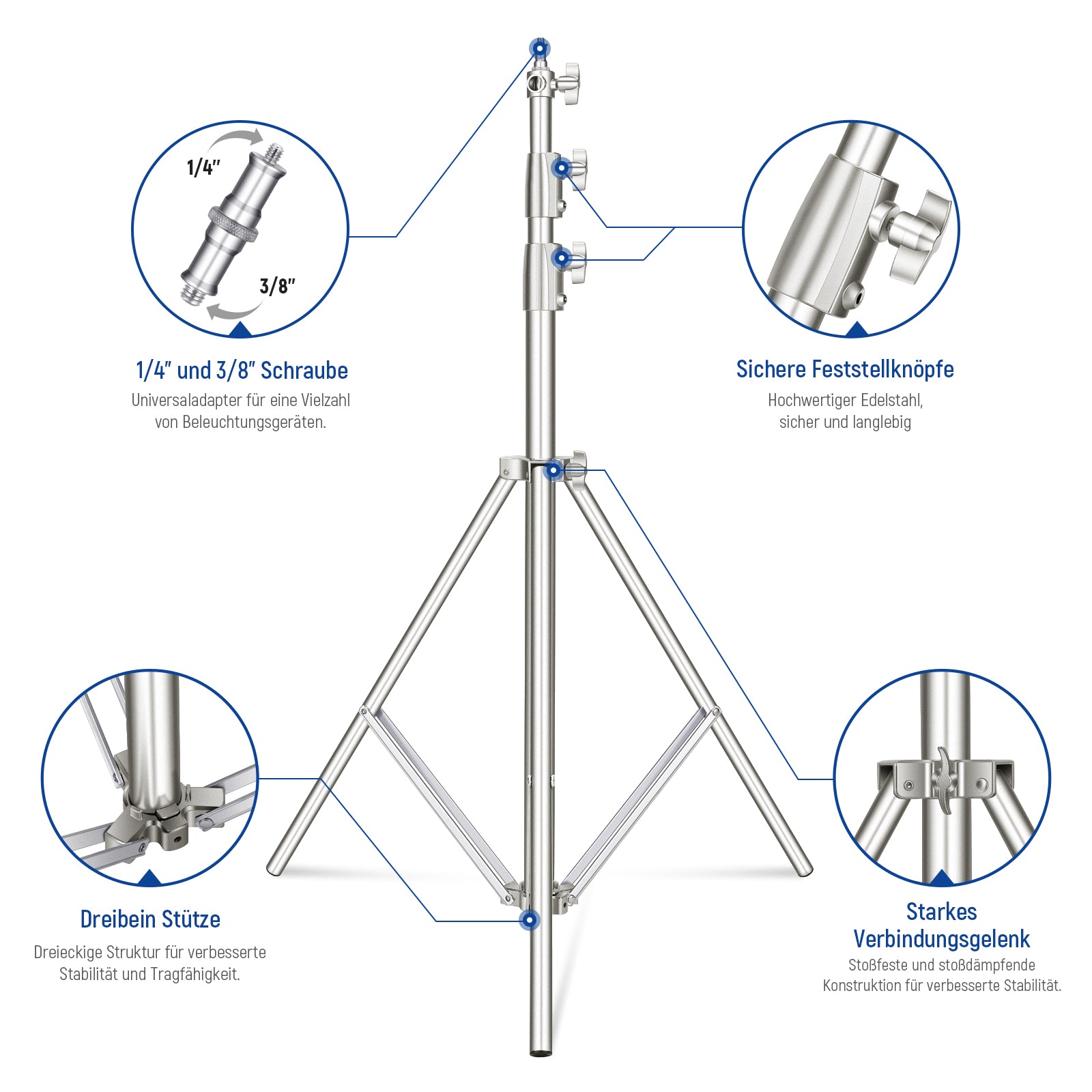 NEEWER 2er Pack ST-200SS 200cm Edelstahl Fotografie Lampenstativ