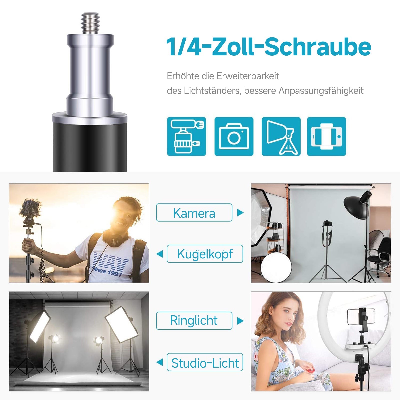 - Breites Anwendungsgebiet: 1/4 Zoll Schraube erhöht die Erweiterbarkeit und Anpassungsfähigkeit der Lichtstative, und Sie können Ihre Kamera, Kugelkopf, Ringlicht, Studioleuchte, Telefonklemme darauf belassen; Der Ständer kann als Hintergrund- und Lichtständer verwendet werden und ist mit HTC VIVE kompatibel. Mit 2 robusten Tragetaschen ist es einfacher und bequemer, den Ständer überall hin mitzunehmen