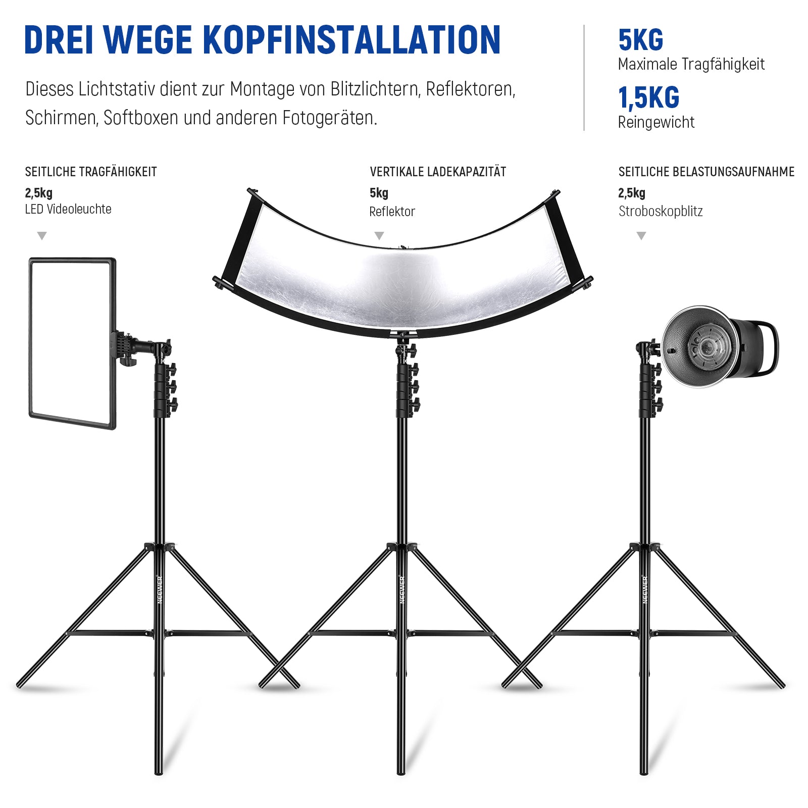 - 【Starke & Stabile Konstruktion】 Aus robustem Metall gefertigt, ist das zusammenklappbare Lichtstativ besonders für den Außeneinsatz geeignet. Mit den gummigepolsterten Füßen ist der Ständer stabil und wird den Boden nicht zerkratzen. Tragfähigkeit: 11lb / 5kg