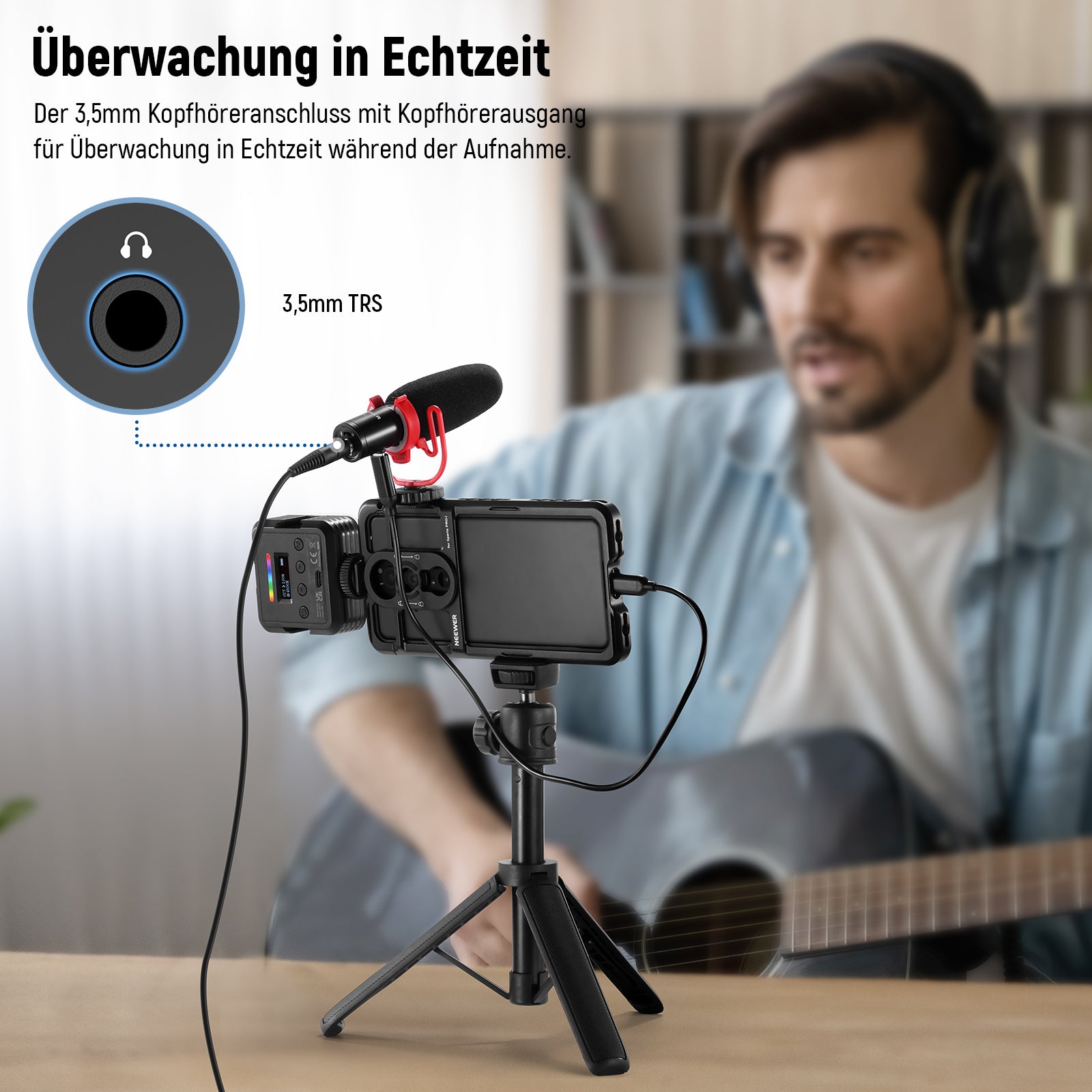 - 【Plug & Play Mikrofon】Schließen Sie das Mikrofon über den USB C Anschluss direkt an Ihr Telefon oder Ihren Computer an und starten Sie die Aufnahme von klarem Sound mit einer beliebigen Aufnahme App. Die 3,5 mm Buchse bietet einen Kopfhörerausgang für Echtzeit Monitoring während der Aufnahme