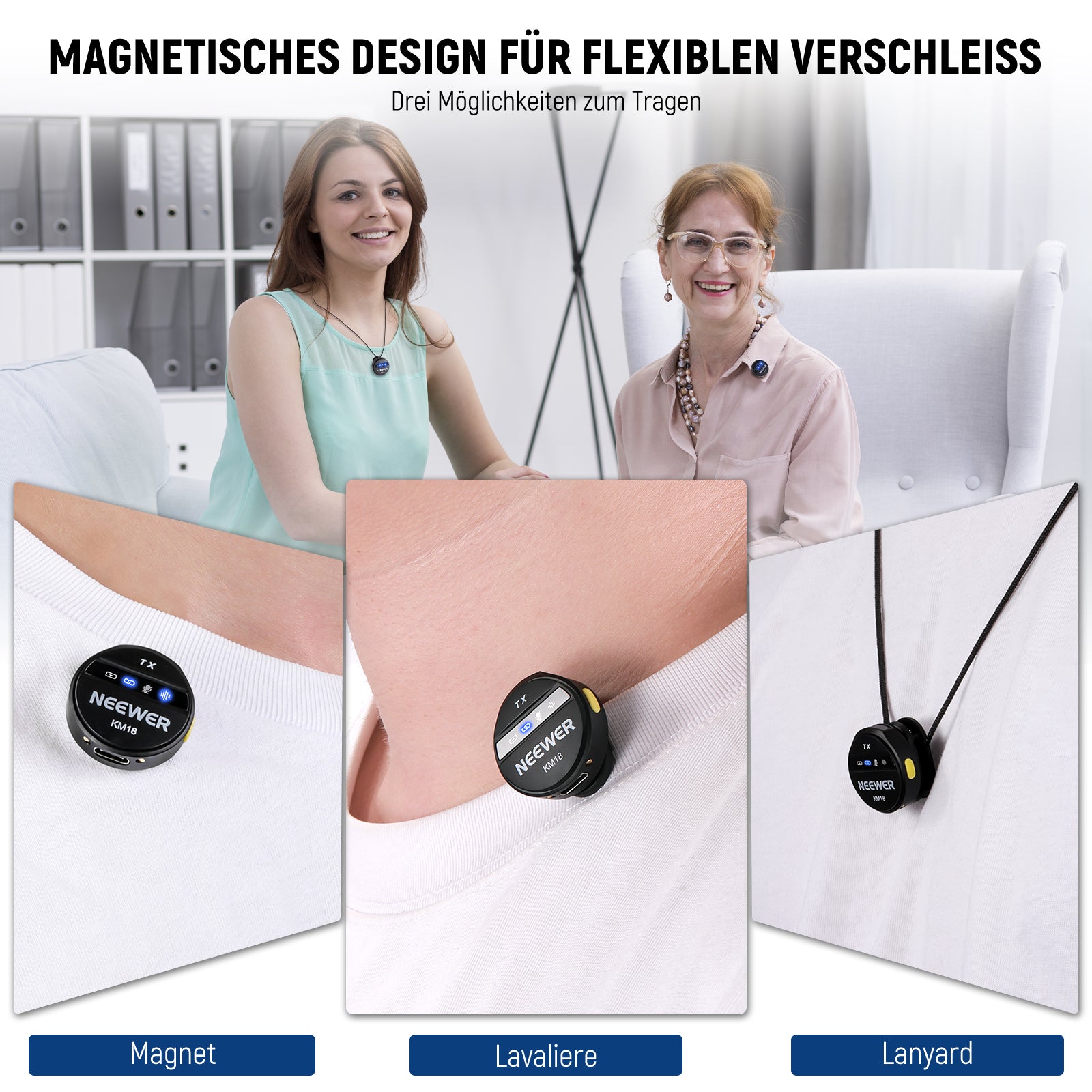 - Mehrere Tragemöglichkeiten- Sie können zwischen magnetischem Tragen, Anklipsen oder Umhängen mit dem mitgelieferten Schlüsselband wählen. Perfekt für eine Vielzahl von Audio Aufnahmesituationen wie Live Übertragungen, Interviews, Online Unterricht, Vlogging usw