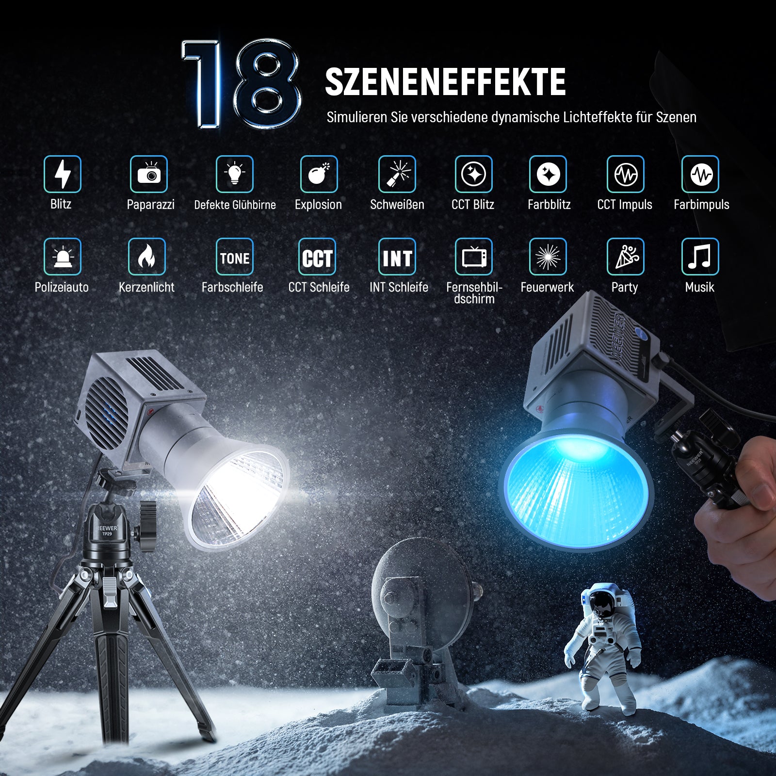 Leises und effizientes Kühlsystem- Ein leiser Lüfter leitet die Wärme während des Betriebs effektiv ab, sodass die optimale Leistung des COB Dauerlichts langfristig erhalten bleibt und gleichzeitig eine ruhige Aufnahmeumgebung ohne Lärmbelästigung gewährleistet ist. Es verfügt über zwei Modi, Silent/AUTO, die je nach Bedarf umgeschaltet werden können