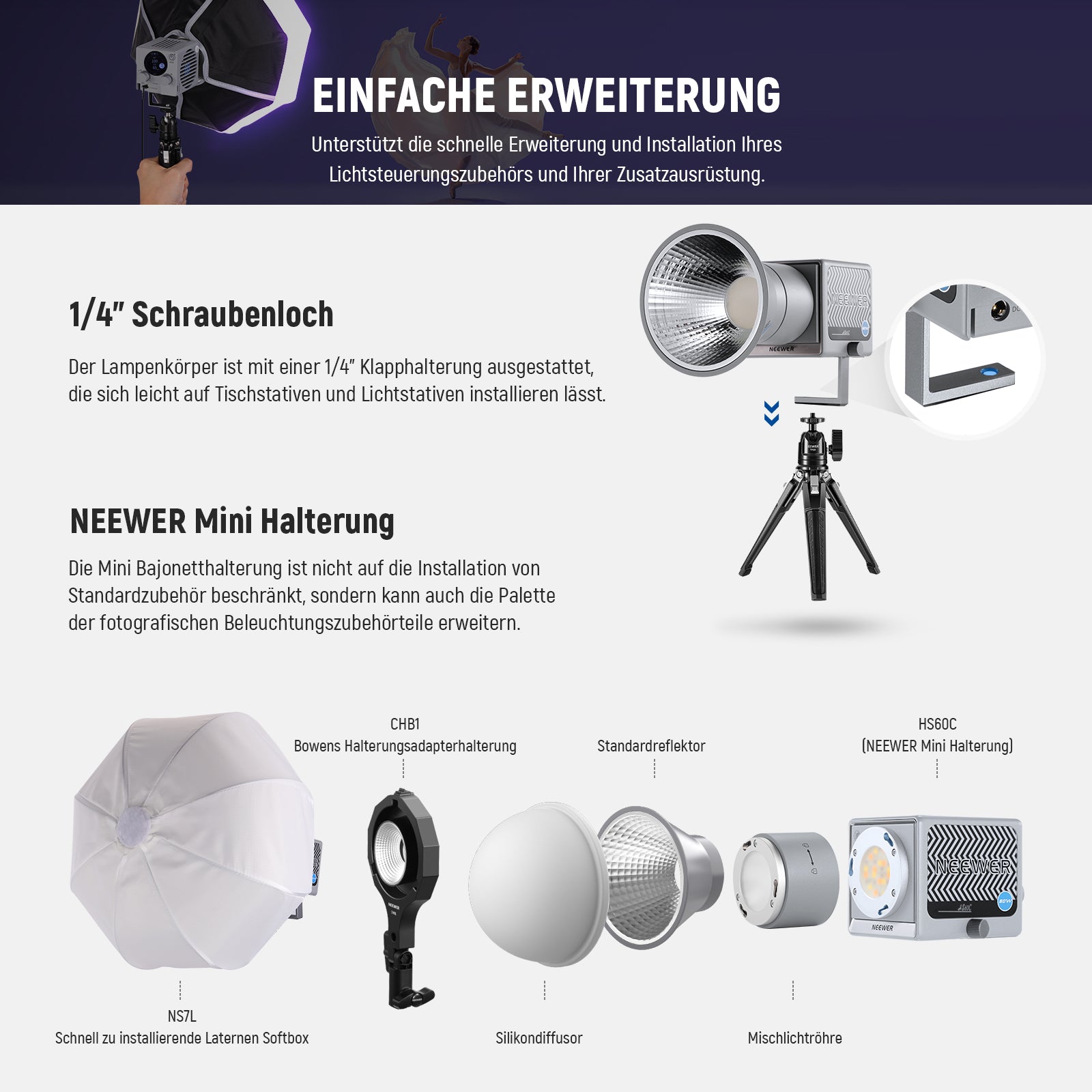 NEEWER HS60C 60W Tragbares RGB-LED-Videolicht