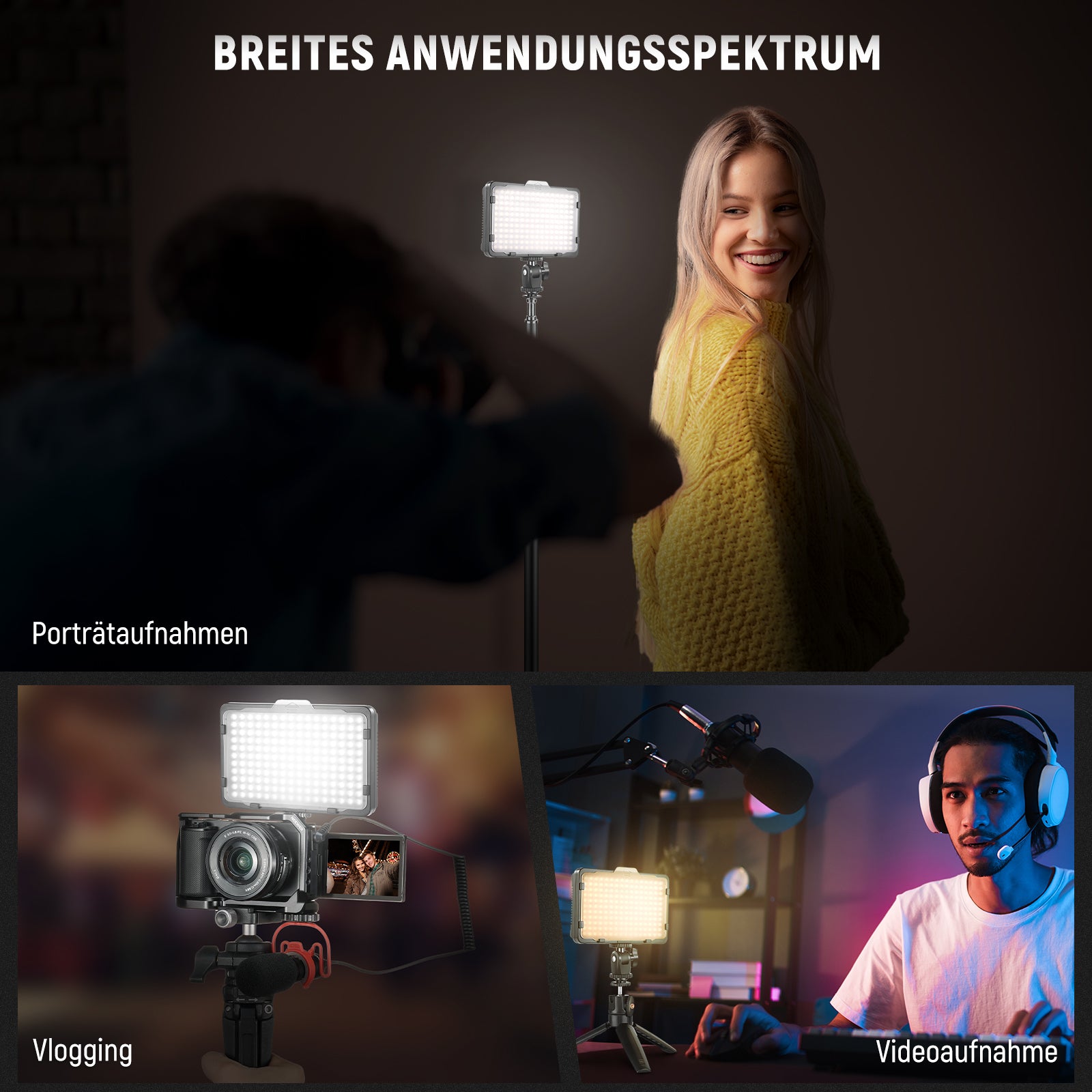 • Universell einsetzbar: Das LED-Licht kann an jedem Standard-Blitzschuh auf den meisten DSLR- oder digitalen Videokameras, Stativen und Lichtstativen montiert werden, die mit einer Blitzschuh-Halterung oder 1/4-Zoll-Gewinde ausgestattet sind