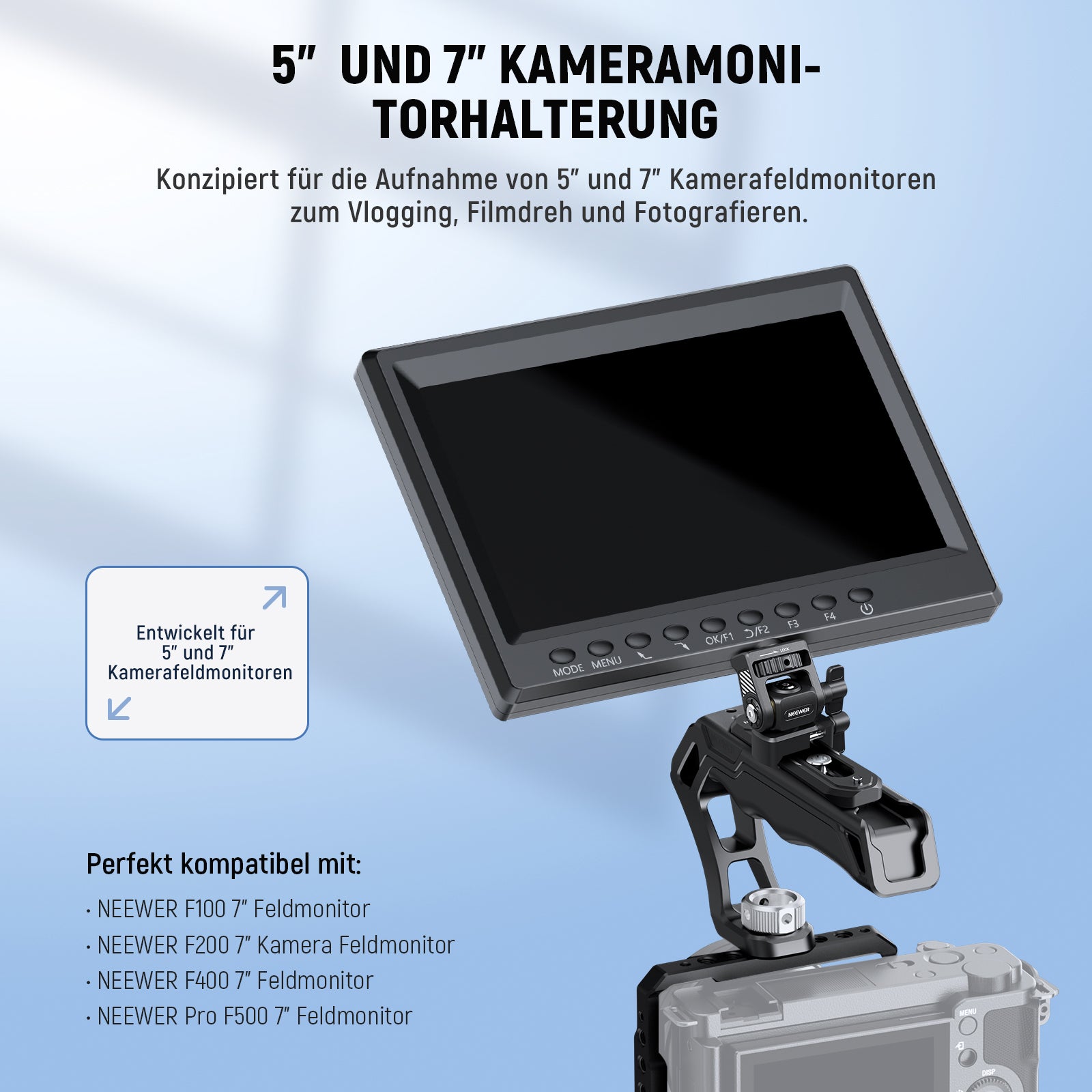 - For 5" & 7" Camera Field Monitors- Designed for 5" and 7" camera field monitors, this monitor mount with a NATO clamp is compatible with SmallRig and NEEWER camera cages compatible with Canon Sony Nikon Fujifilm Fuji cameras, video rigs, top handle accessories, side handles, gimbal sling handles, and camera hot shoes, perfect for vlogging, filmmaking, and photography