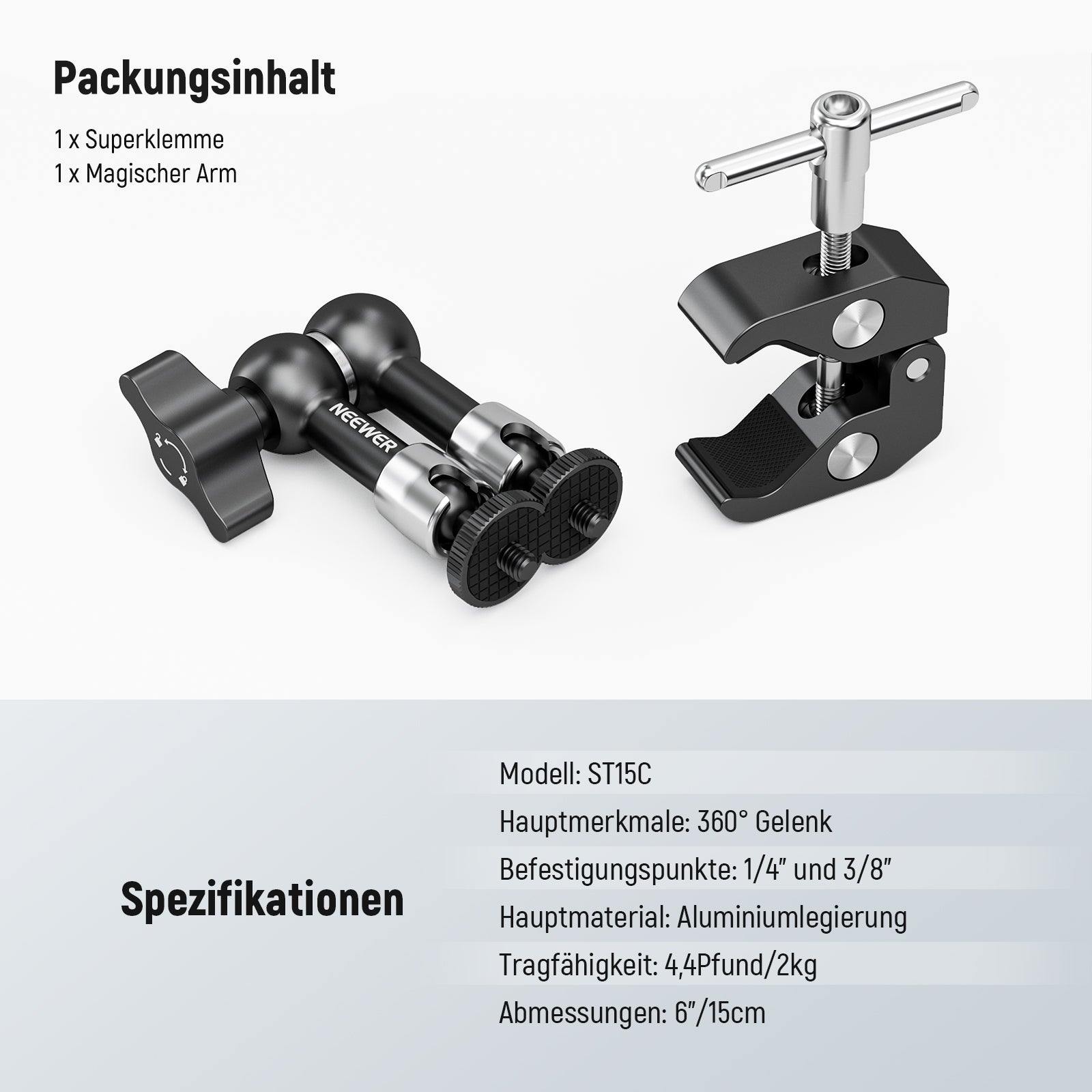 NEEWER ST15C/ST25C Verstellbarer Magic-Arm mit Super Clamp