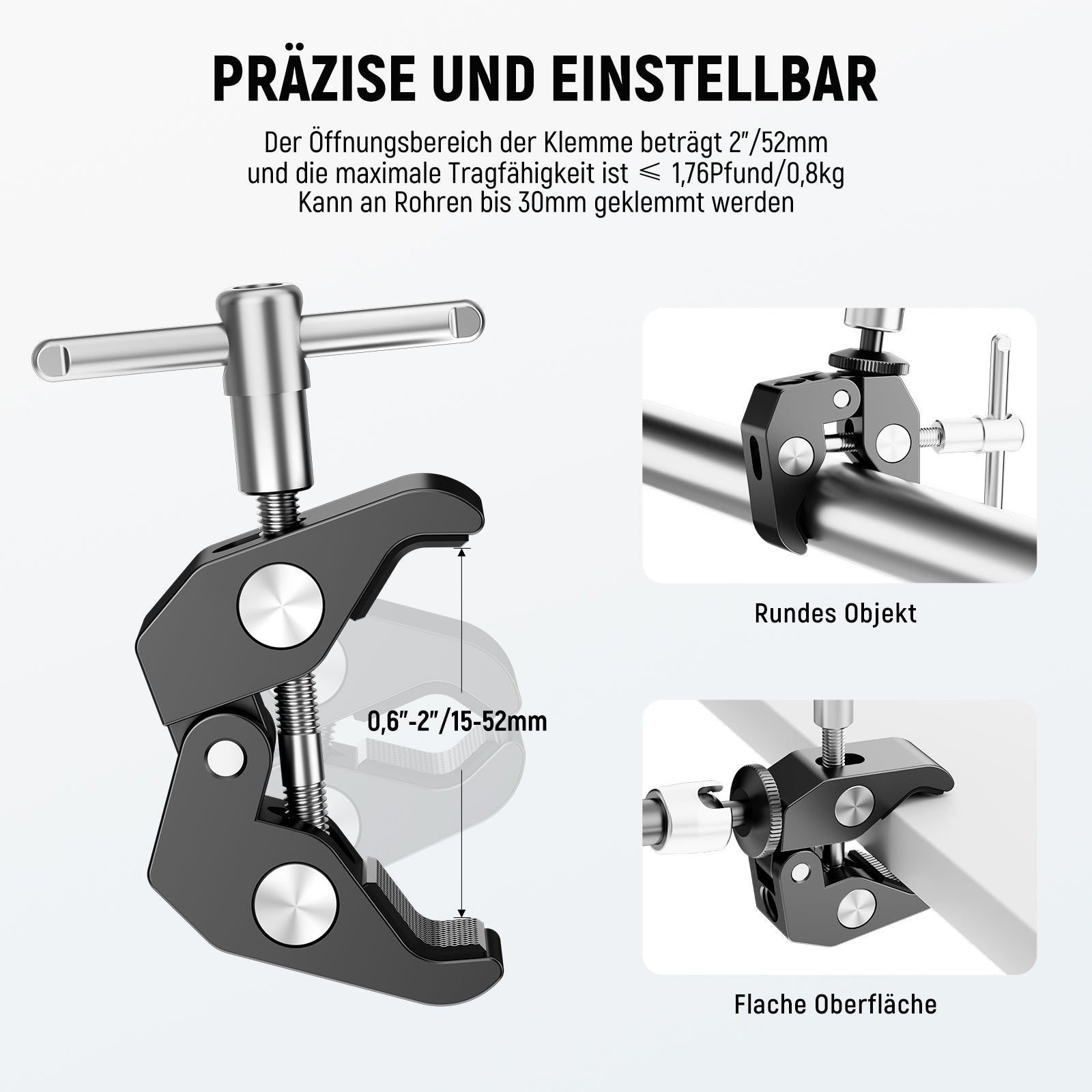 1. Nur der magische Arm und die Superklemme sind im Lieferumfang enthalten.