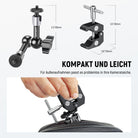 • Kompakt und leicht- Dieses Magic Arm mit Stativ Klemme Set enthält einen 9,8"/25cm langen Kamera Arm und eine Super Klemme mit einem Öffnungsbereich von 0,6"-2"/15mm-52mm für runde Objekte. Es ist leicht und einfach in Ihrer Kameratasche oder Ihrem Rucksack zu transportieren Ideal für Studioaufnahmen und Aufnahmen im Freien