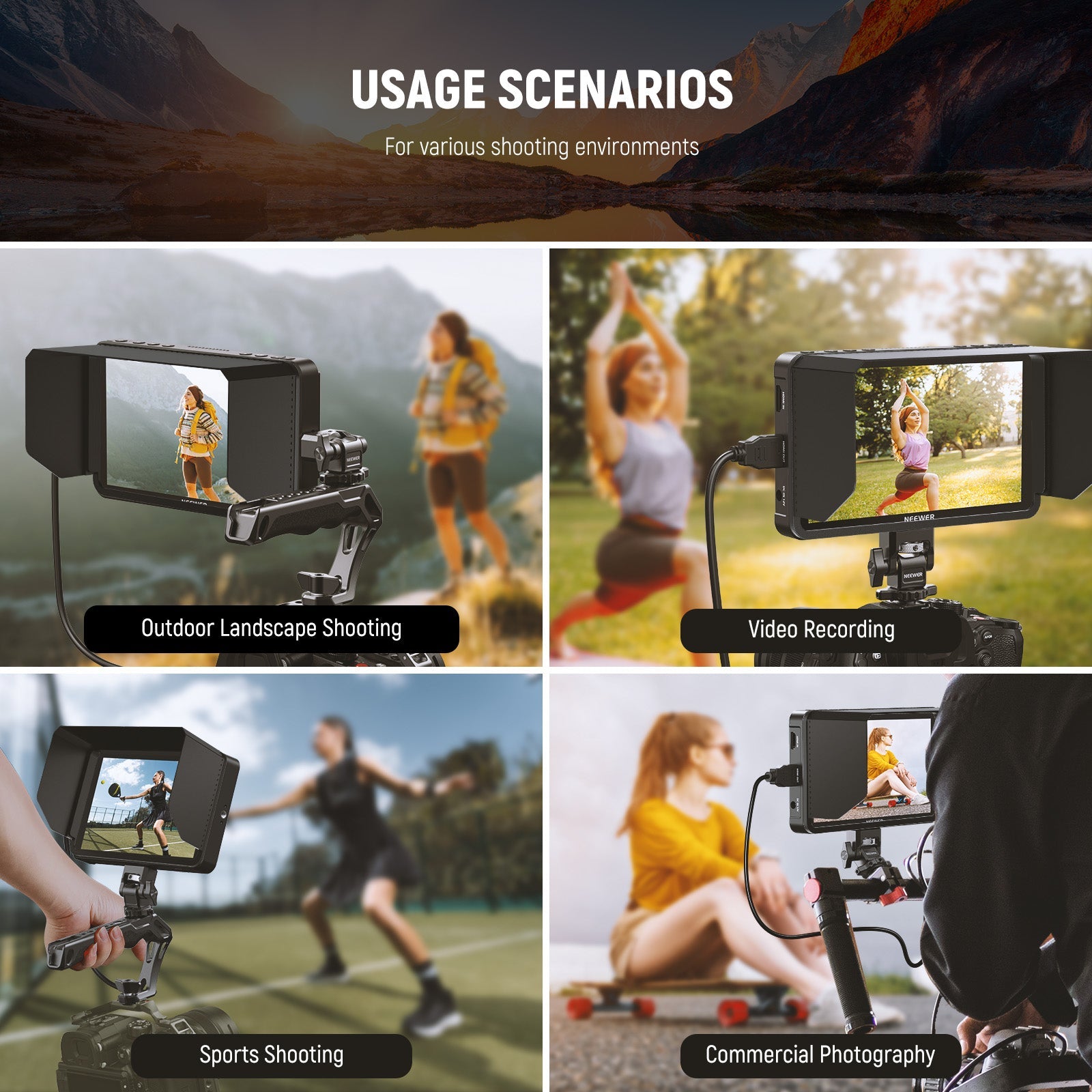 - Passgenaues Design und einfacher Zugriff- Der Rahmen der Sonnenblende passt genau in NEEWER F700 Field Monitor, ohne den normalen Gebrauch zu behindern. Er gewährleistet einen ungehinderten Zugriff auf die obere Taste und ermöglicht ein schnelles Einstellen der Haube bei Bedarf