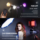 - Funk App und 2,4G Steuerung- Nutzen Sie neben dem physischen Bedienfeld unsere NEEWER App mit Infinity Technologie für die Funksteuerung und OTA Firmware Updates. MS60 Dauerleuchte unterstützt 2,4G Netzwerkvermaschung zur Kommunikation mit anderen NEEWER Leuchten im selben Kanal (00-99) zur Beleuchtungssynchronisierung innerhalb von 15m