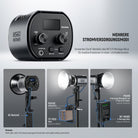 - Kontinuierliches COB LED Studio Licht- MS60 Studiolicht verfügt über eine Leistung von 65W, eine max. Beleuchtungsstärke von 40.000 Lux/1m (120000Lux/0,5m), 5600K Tageslicht, 9 Szeneneffekte für Videoaufnahmen und einen CRI 97+/TLCI 98+ für eine genaue Farbwiedergabe. Die Fotografie Beleuchtung ist bei einer Verschlusszeit von 1/2000s flimmerfrei. Mit der erweiterten PWM Dimmung können Sie die Helligkeit in 1% Schritten präzise von 0 bis 100% anpassen