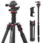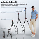 - Schnelle und einfache Einstellung- Die hohe Smartphone Kamerastativhalterung lässt sich von 22,8" bis 52" einstellen, mit einer 2 teiligen Mittelsäule, die bis zu 72" angehoben werden kann und für Makroaufnahmen umgedreht werden kann, sowie 3 Schnellverstellungen für den Beinwinkel