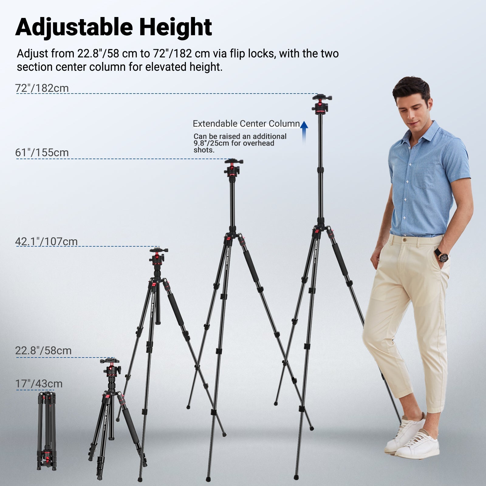 - Höhe: 48–182 cm (19"–72")