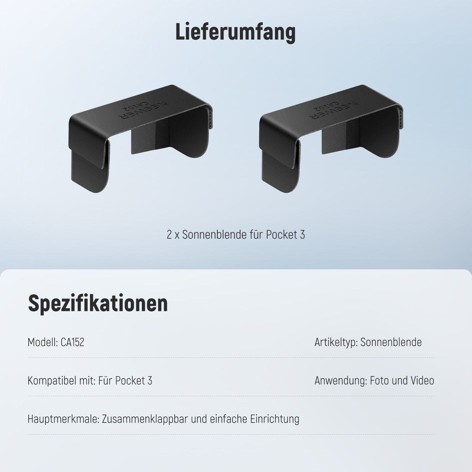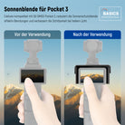 Zweiteilig im Lieferumfang enthalten- Die Pocket 3 Sonnenblende ist ein praktisches zweiteiliges Set, das hervorragenden Sonnenschutz für Außenaufnahmen bietet. Enthält ein zusätzliches Teil als Ersatz oder zum Teilen mit Ihrer Familie oder Ihren Freunden