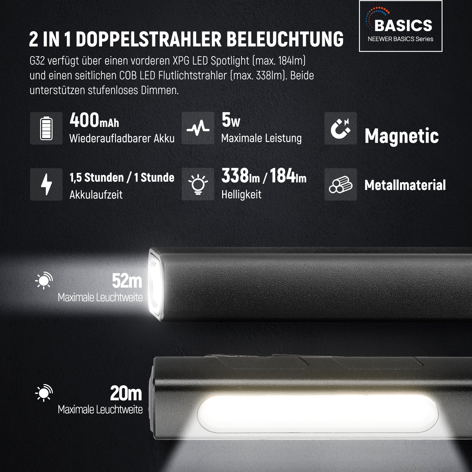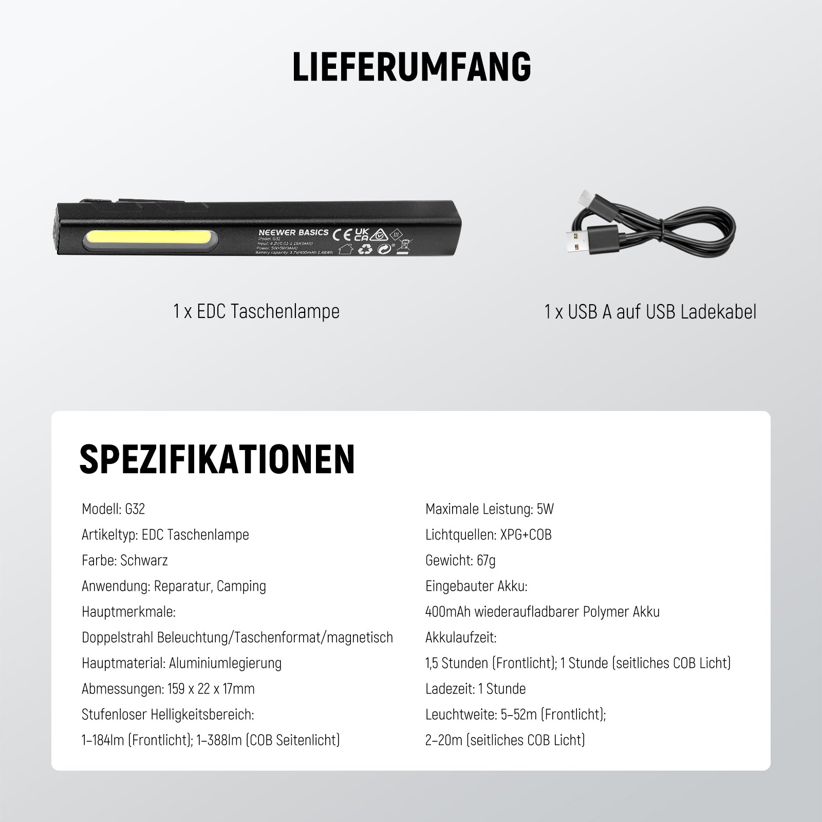 NEEWER BASICS G32 2 in 1 EDC Taschenlampe mit seitlichem COB Flutlicht