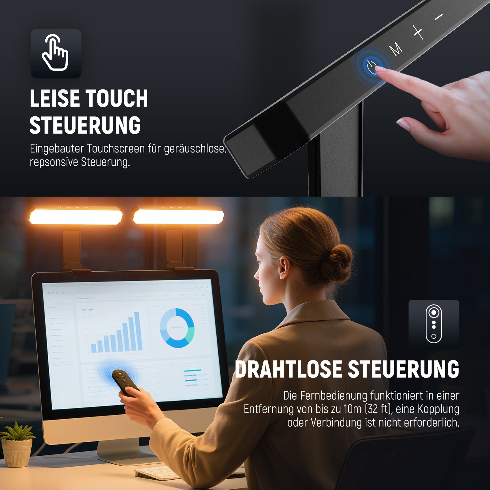 - Augenschonende sanfte Beleuchtung- Die Computerleuchte für Zoom Meetings und Videoanrufe am Schreibtisch verwendet hochwertige LEDs, die hinter einem weichen Diffusionspanel untergebracht sind und eine gleichmäßige, stabile und kontinuierliche Beleuchtung ohne grelles Licht oder schädliches blaues Licht bieten. Dies gewährleistet ein angenehmes Sehen über lange Zeiträume ohne Augenbelastung. Mit einem hohen CRI von 95 gibt sie Farben präzise wieder und ist somit ideal für Benutzer, die eine naturgetreue Farbwiedergabe in ihrem Arbeitsbereich benötigen