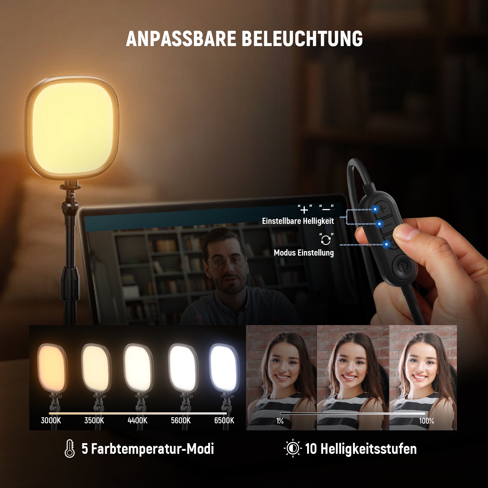 • Einstellbare Höhe und Neigung- Der Tischständer ist von 20 bis 28cm höhenverstellbar und verfügt über eine 1/4" Schraubbefestigung, die eine Neigung um 180° ermöglicht, sodass die Studiolicht flexibel positioniert werden kann. Ideales Keylight oder Fülllicht für eine vollständige Ausleuchtung des Bildschirms im Vergleich zu einem Panellicht, für professionelle Videokonferenzen mit Laptop/Computermonitor Zoom Meetings Live Streaming für TikTok/YouTube FaceTime Podcasts Vlog Makeup Artists usw.