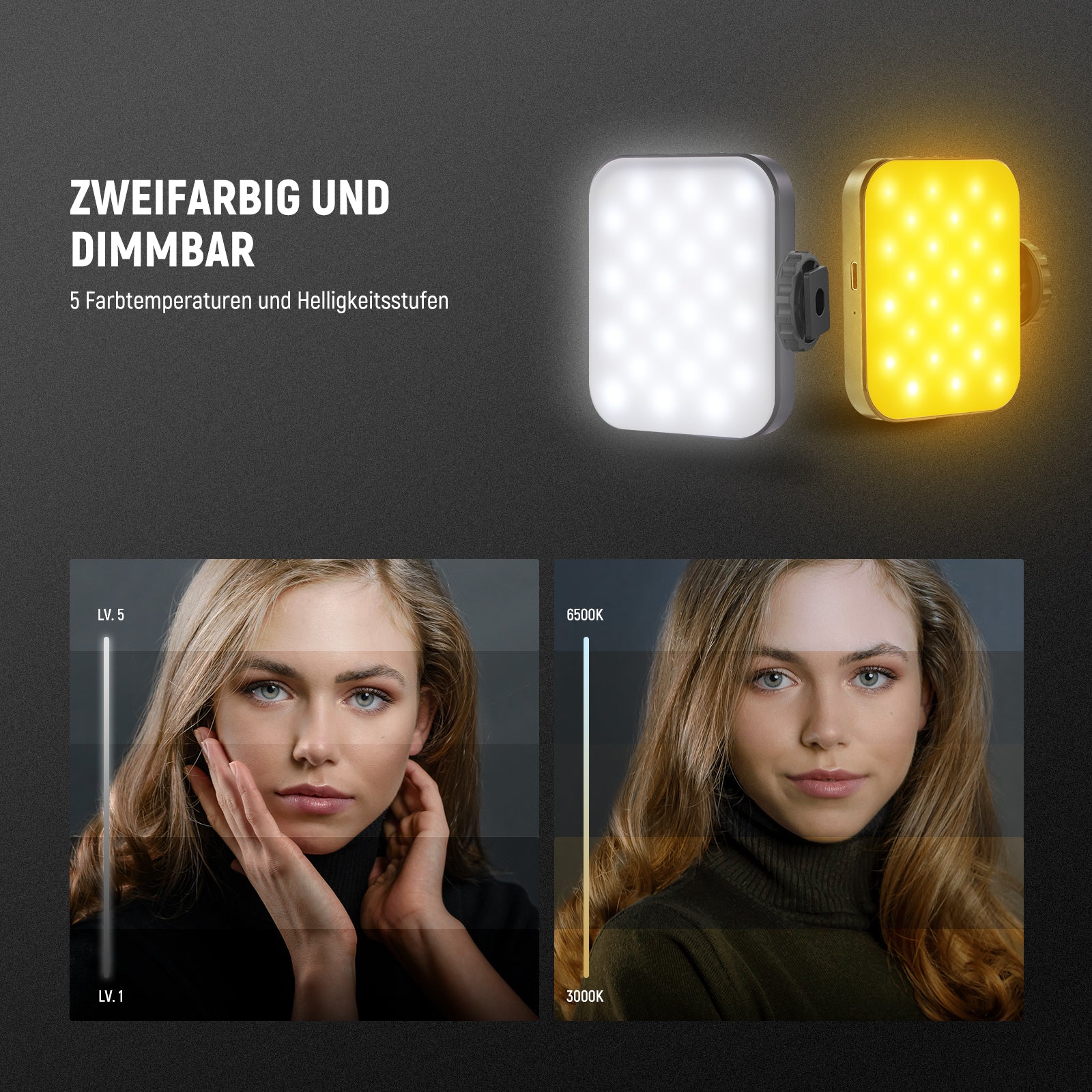 • Magnetisches Zweifarben LED Fotolicht- Die Zweifarben LED Foto und Videoleuchte BL48B bietet Farbtemperatur von 3000K bis 6500K, 5 Dimmstufen, 257Lux bei 0,5m und CRI von über 95. Der integrierte 1000mAh Akku lädt sich in 130 Minuten vollständig auf und arbeitet bei 100% Helligkeit 75 Minuten lang ununterbrochen. Klein und leicht, kann es magnetisch an Smartphones befestigt werden, die kompatibel mit MagSafe iPhone sind, um unterwegs Fotografie und Videoaufnahmen Makeup Streaming zu ermöglichen