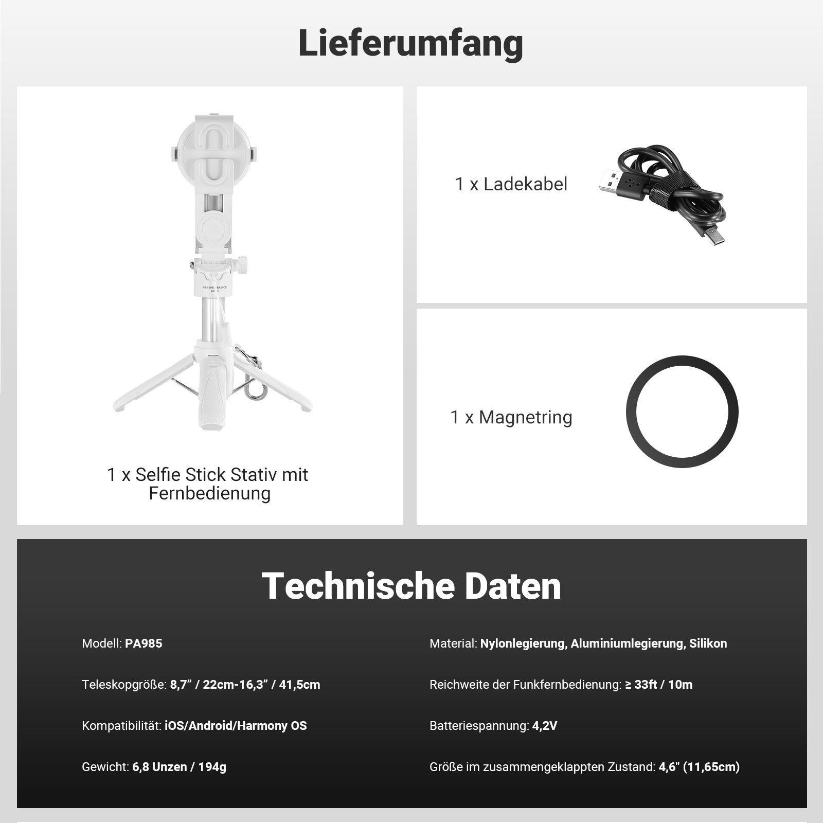 - 1 × Selfie-Stick-Stativ