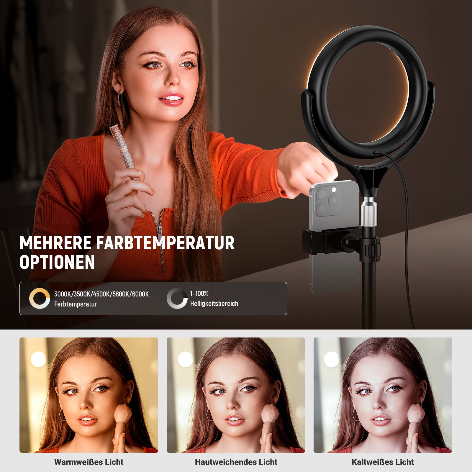 • Anpassbare Beleuchtung- Das LED Halo Ring Licht für Smartphones bietet 5 CCT Modi mit einer Dimmbarkeit von 1–100%. Key Light / Fill Circle Videolicht für TikTok, YouTube, Social Media, Vlogging und Filmaufnahmen, Selfies, Streamer Streaming, Vlogs und Videoaufnahmen