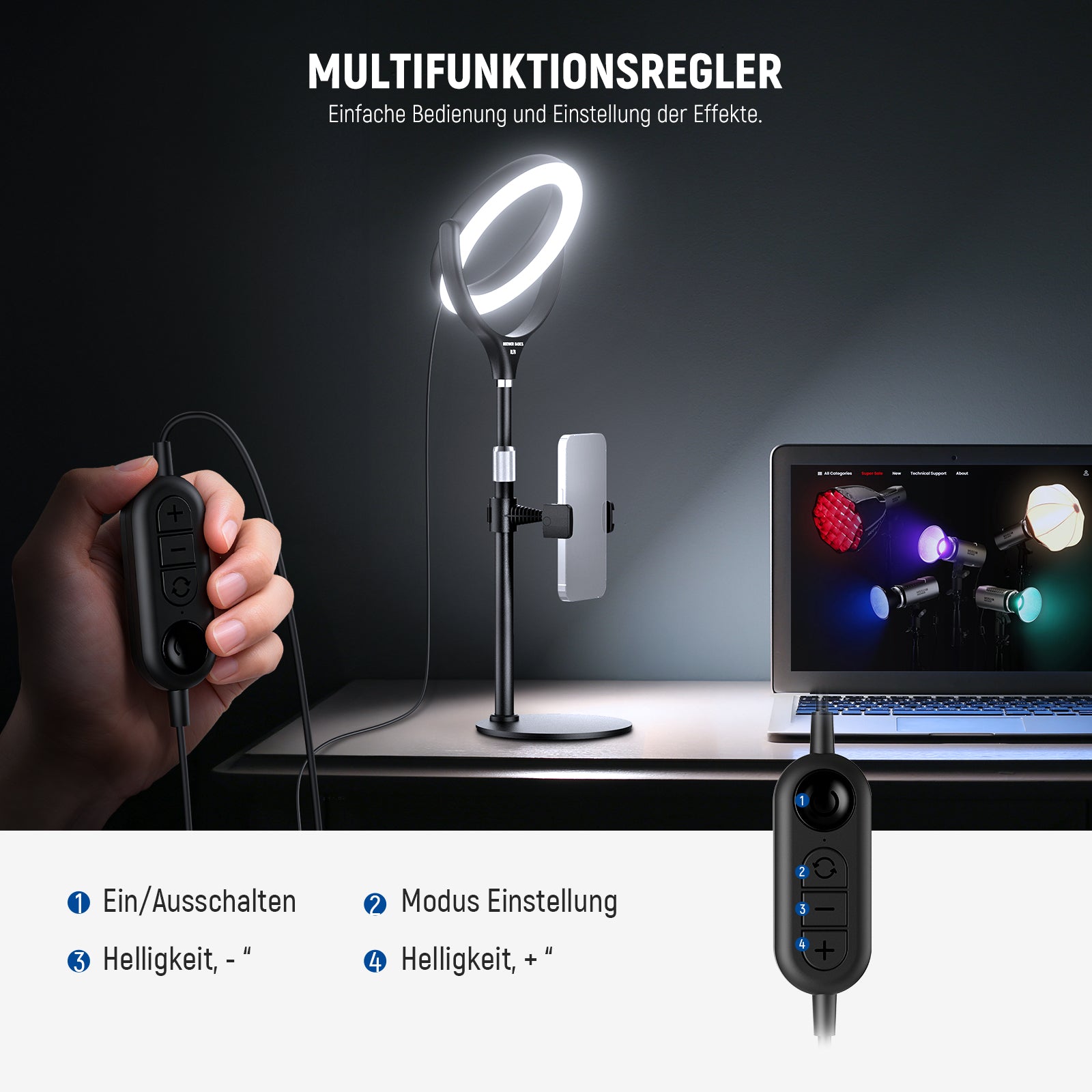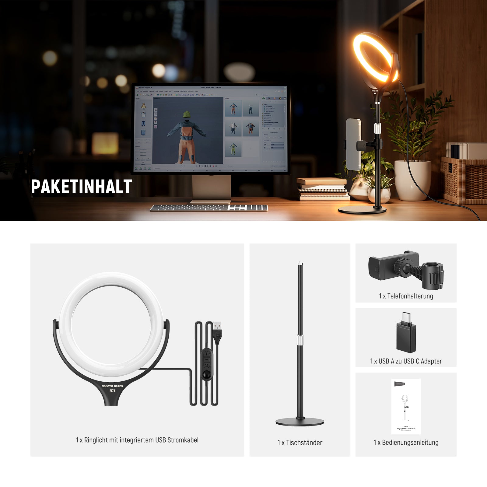 • 1 × Ringlicht mit eingebautem USB-Kabel