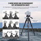 - Hauptmerkmale: 3-Wege-Kopf, Handkurbel