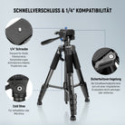 - Superstabil und dennoch leicht- Das aus einer Aluminiumlegierung und Kunststoff gefertigte, hochbelastbare Kamerastativ unterstützt DSLR Kameras (kompatibel mit Sony Nikon und Canon Kameras) mit einem Gewicht von bis zu 4kg (8,8 lbs). Seine um 360° drehbaren Füße und die rutschfesten Gummipads sorgen für hervorragenden Halt auf unterschiedlichem Untergrund, während ein Gegengewichtshaken an der Mittelsäule für zusätzliche Sicherheit sorgt. Mit einem Gewicht von nur 1,5kg